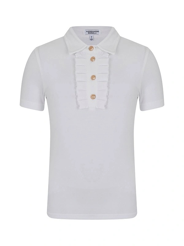 Блузка - поло ALESSANDRO BORELLI для девочек – идеальное решение для школьных будней. Модель с коротким рукавом декорирована отложным воротником, а также застежкой на пуговицы. Поло будет идеально сочетаться как с брюками, так и с юбкой или сарафаном. Блуза выполнена из качественной ткани с большим добавлением хлопка, что позволяет с комфортом посещать занятия или торжественные мероприятия. За ней не нужно постоянно ухаживать, после стирки ткань не теряет форму и цвет. Блуза подчеркнет индивидуальность Вашего ребенка. В нашем каталоге представлены модели для детей от 6 до 16 лет.
