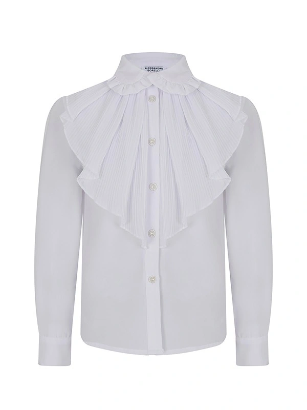 Блузка ALESSANDRO BORELLI для девочек – идеальное решение для школьных будней. Модель с длинным рукавом декорирована красивым жабо, отложным воротником, манжетами и застежкой на пуговицы. Блузка будет идеально сочетаться как с брюками, так и с юбкой или сарафаном. Блуза выполнена из качественной ткани с большим добавлением вискозы, что позволяет с комфортом посещать занятия или торжественные мероприятия. За ней не нужно постоянно ухаживать, после стирки ткань не теряет форму и цвет. В нашем каталоге представлены модели для детей от 6 до 16 лет.