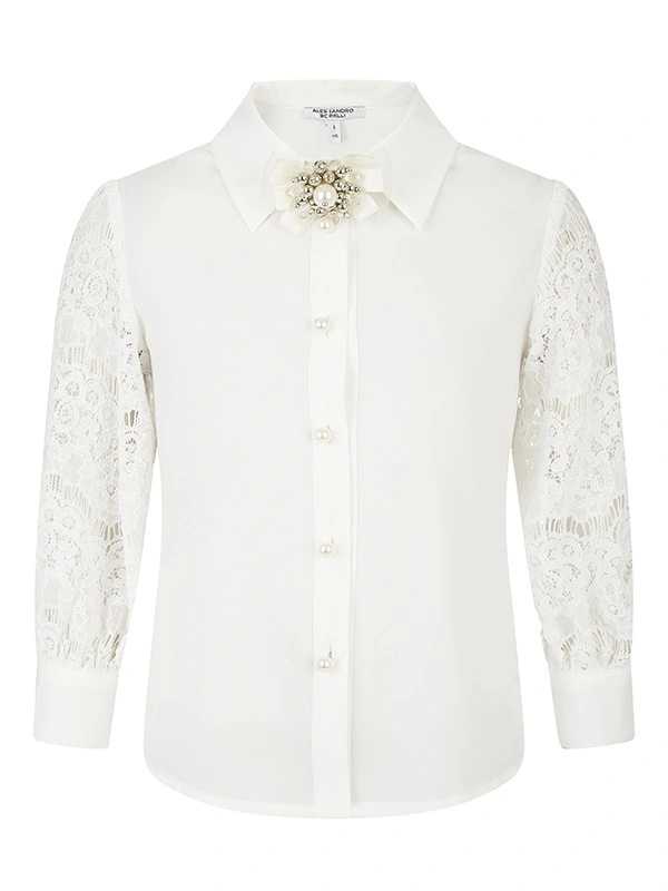 Блузка ALESSANDRO BORELLI для девочек – идеальное решение для школьных будней. Модель декорирована кружевным рукавом 3/4, съемной брошью, отложным воротником, манжетами и застежкой на пуговицы. Блузка будет идеально сочетаться как с брюками, так и с юбкой или сарафаном. Блуза выполнена из качественной ткани с большим добавлением вискозы, что позволяет с комфортом посещать занятия или торжественные мероприятия. За ей не нужно постоянно ухаживать, после стирки ткань не теряет форму и цвет. В нашем каталоге представлены модели для детей от 6 до 16 лет.
