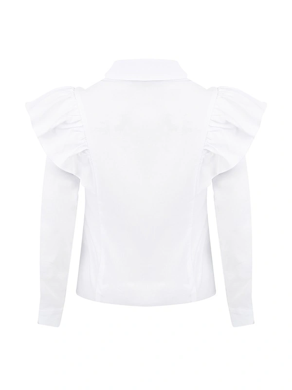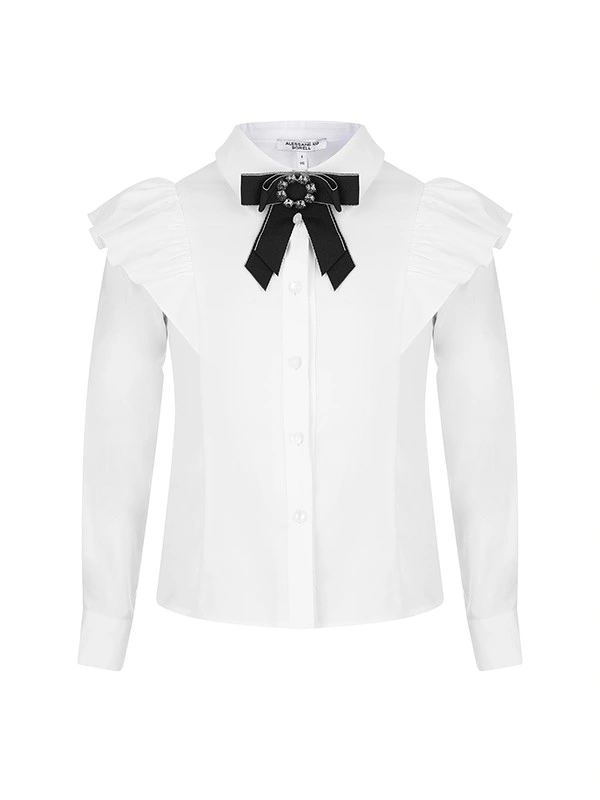 Блузка ALESSANDRO BORELLI для девочек – идеальное решение для школьных будней. Модель с длинным рукавом декорирована красивыми воланами, съемным бантом, отложным воротником, манжетами и застежкой на пуговицы. Блузка будет идеально сочетаться как с брюками, так и с юбкой или сарафаном. Блуза выполнена из качественной ткани с большим добавлением хлопка, что позволяет с комфортом посещать занятия или торжественные мероприятия. За ей не нужно постоянно ухаживать, после стирки ткань не теряет форму и цвет. В нашем каталоге представлены модели для детей от 6 до 16 лет.
