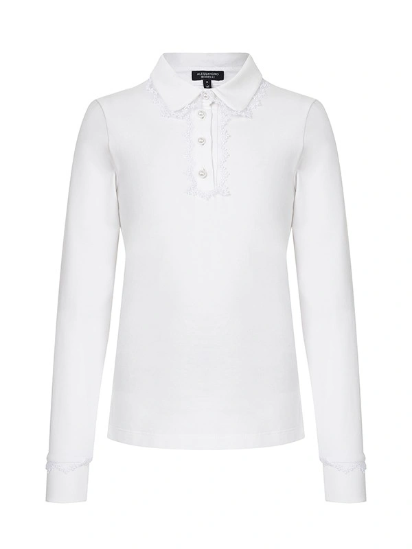 Блузка ALESSANDRO BORELLI для девочек – идеальное решение для школьных будней. Трикотажная модель с длинным рукавом декорирована кружевом по планке, манжетами на рукавах, отложным воротником, а также застежкой на пуговицы. Блуза будет идеально сочетаться как с брюками, так и с юбкой или сарафаном. Блуза выполнена из качественной ткани с большим добавлением хлопка, что позволяет с комфортом посещать занятия или торжественные мероприятия. За ей не нужно постоянно ухаживать, после стирки ткань не теряет форму и цвет. Блуза подчеркнет индивидуальность Вашего ребенка. В нашем каталоге представлены модели для детей от 6 до 16 лет.