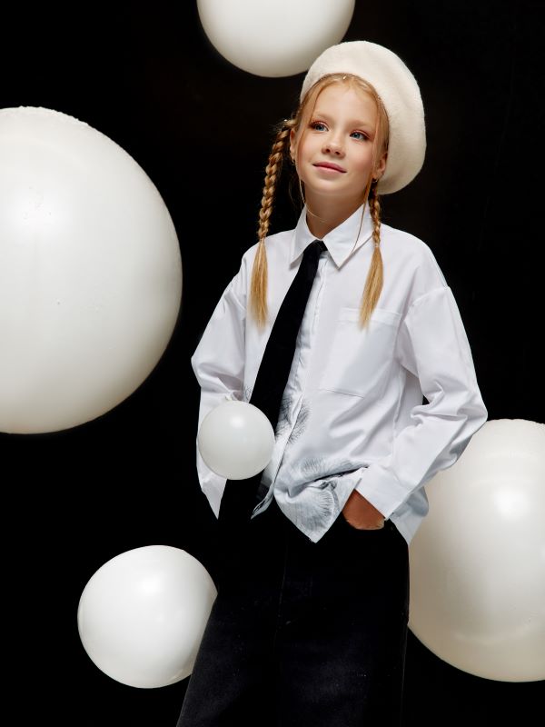 Рубашка ALESSANDRO BORELLI для девочек выполнена в стиле коллекции Orchid. Модель в белом цвете отличается элегантным и стильным дизайном. Рубашка украшена крупным черно-белым принтом в виде орхидеи на передней части. У рубашки классический воротник и черный съемный бант, придающий изысканность и элегантность. Длинные рукава и аккуратный фасон делают ее подходящей как для повседневного, так и для более праздничного мероприятия. Рубашка для девочки выполнена из качественного материала с большим добавлением хлопка. Не боится частых стирок: ткань не выцветает и не заламывается.