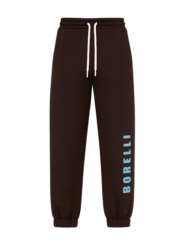 Спортивные брюки для мальчика Alessandro Borelli — стильная и удобная модель для активных будней и отдыха. Изготовлены из качественной хлопковой ткани, которая сохраняет тепло и обеспечивает комфорт в течение всего дня. Глубокий коричневый цвет гармонично дополнен контрастной голубой надписью BORELLI на штанине, придающим изделию современный спортивный характер. Эластичный пояс со шнурком позволяет регулировать посадку, а манжеты по низу штанин обеспечивают удобство движения.