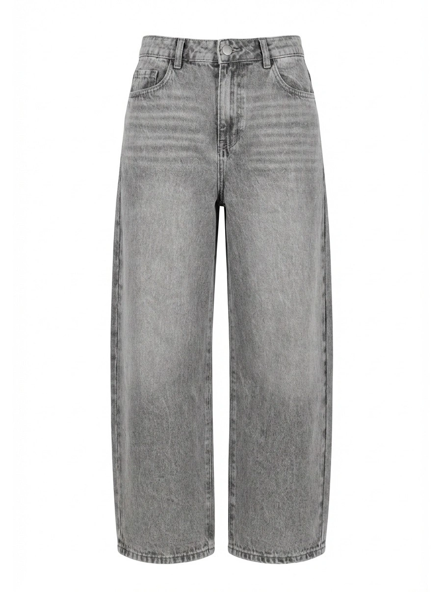 Светло-серые широкие джинсы для девочек. Трендовые джинсы светло-серого оттенка с винтажной варкой выполнены из качественного денима с классической высокой посадкой, застежкой на пуговицу и молнию, шлевками для ремня и традиционными карманами. Модный широкий крой создает современный расслабленный силуэт. Светлая потертая варка в серых тонах добавляет винтажный характер. Качественные швы и отделка обеспечивают долговечность. Универсальные джинсы для повседневной носки. Отлично сочетаются с футболками, свитшотами и топами.