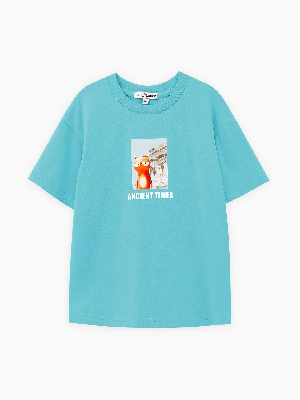 Дизайнерская футболка освежающего оттенка морской бриз для мальчика. Прямая модель. Спущенная линия плеча. Эластичная горловина. Футболка с авторским принтом, безопасная и качественная экосольвентная печать.