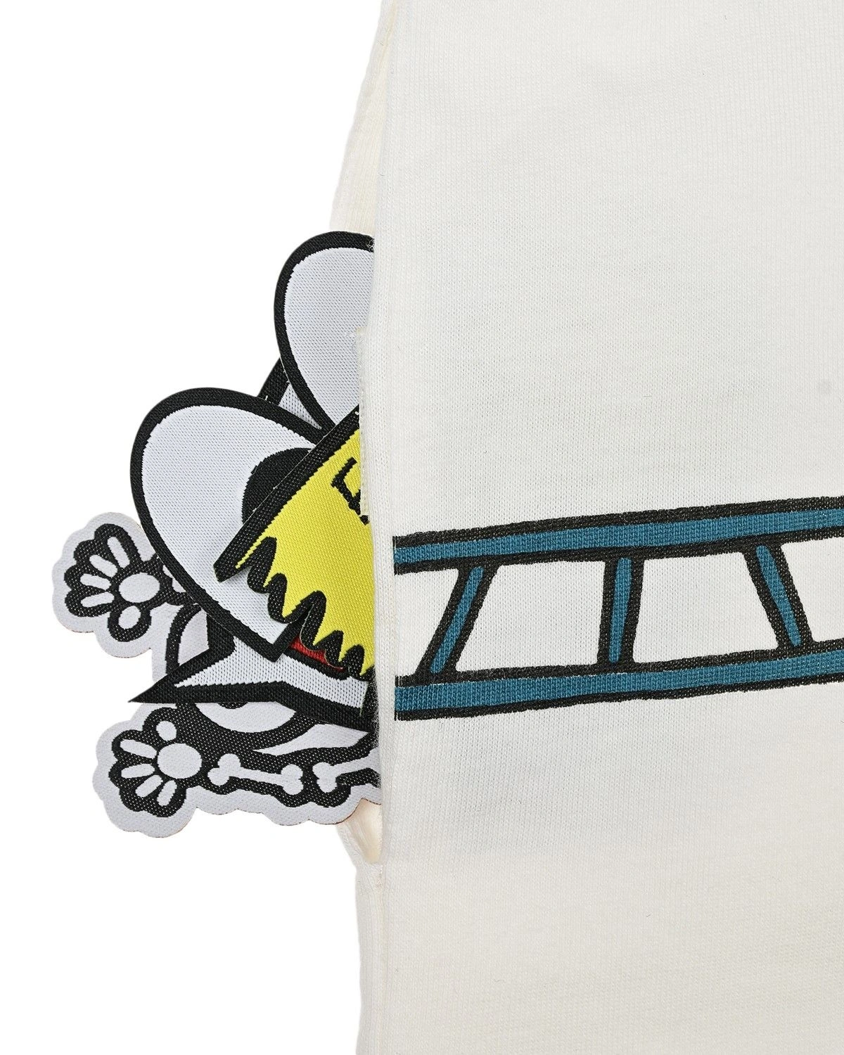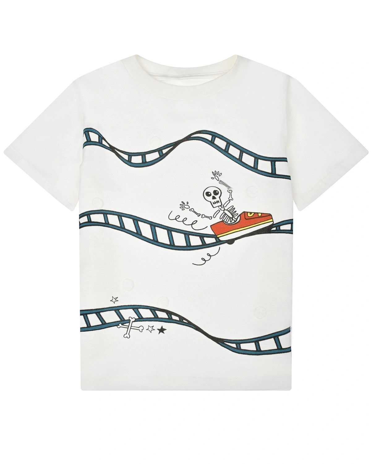 Футболка Stella McCartney молочного цвета. Модель с короткими рукавами декорирована патчами со скелетами.