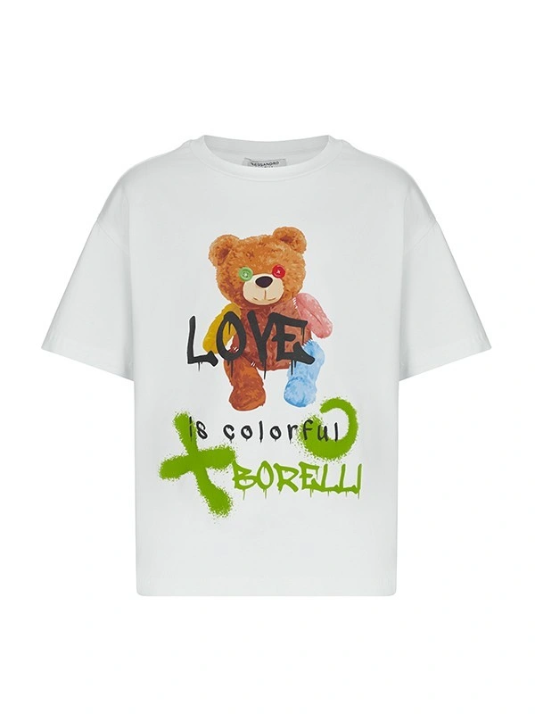 Футболка ALESSANDRO BORELLI для девочек – лучший выбор для лета и теплой весны. Простой, но яркий принт, выполнен в стиле коллекции TEDDY BEAR. Образы мишек привлекут внимание всех окружающих. Качественная хлопковая ткань долго сохраняет свою яркость, принт не выцветает после стирки. Футболка будет хороша для прогулок, отдыха или занятия спортом. Прекрасно сочетается с любой спортивной одеждой и другими моделями из коллекции. Если вы хотите, чтобы ваш ребенок чувствовал себя комфортно – приобретайте футболку из коллекции TEDDY BEAR. В нашем каталоге представлена одежда для детей от 6 до 16 лет.