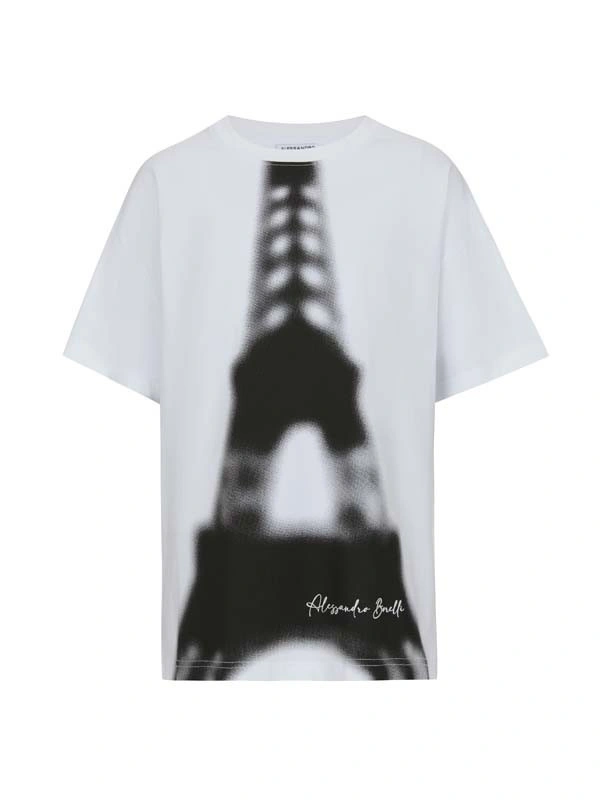 Футболка ALESSANDRO BORELLI для девочки идеально сочетается как с другими моделями из коллекции Ballet, так и с базовыми джинсами или шортами. Модель свободного кроя выполнена в стиле casual. На передней части изображен яркий черный принт, напоминающий силуэт Эйфелевой башни, с добавлением художественного эффекта размытости. В нижней части нанесена бархатная стилизованная подпись Alessandro Borelli. Приятная ткань с большим добавлением хлопка делает футболку с коротким рукавом лучшим вариантом для любого сезона. Строго ухода она не требует: после стирки рисунок останется таким же ярким. В ней можно смело гулять, отдыхать или заниматься спортом.