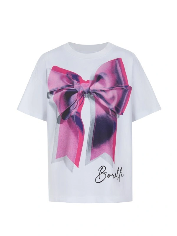 Футболка ALESSANDRO BORELLI для девочки идеально сочетается как с другими моделями из коллекции Ballet, так и с базовыми джинсами или шортами. Главным украшением является большое изображение розово-фиолетового банта, которое создает впечатление объемности и добавляет элегантности. В нижней части изделия присутствует изящная подпись "Borelli", подчеркивающая модный дизайн. Приятная ткань с большим добавлением хлопка делает футболку с коротким рукавом лучшим вариантом для любого сезона. Строго ухода она не требует: после стирки рисунок останется таким же ярким. В ней можно смело гулять, отдыхать или заниматься спортом.