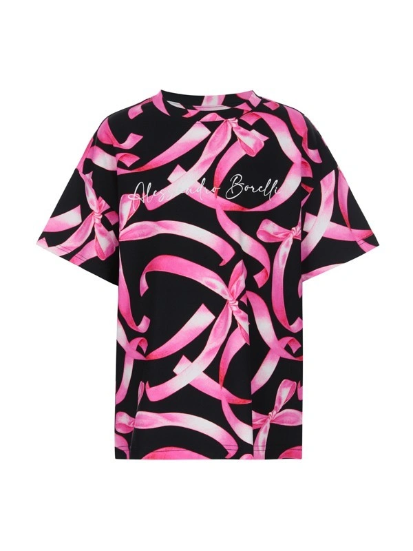 Футболка ALESSANDRO BORELLI для девочки идеально сочетается как с другими моделями из коллекции Ballet, так и с базовыми джинсами или шортами. Основа модели чёрного цвета, а её поверхность украшена эффектным принтом в виде розовых лент и бантов, который добавляет современный акцент. Футболка свободного кроя выполнена в стиле casual. Приятная ткань с большим добавлением хлопка делает футболку с коротким рукавом лучшим вариантом для любого сезона. Строго ухода она не требует: после стирки принт останется таким же ярким. В ней можно смело гулять, отдыхать или заниматься спортом.