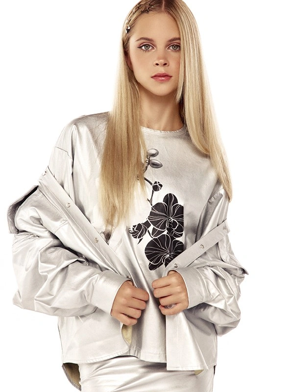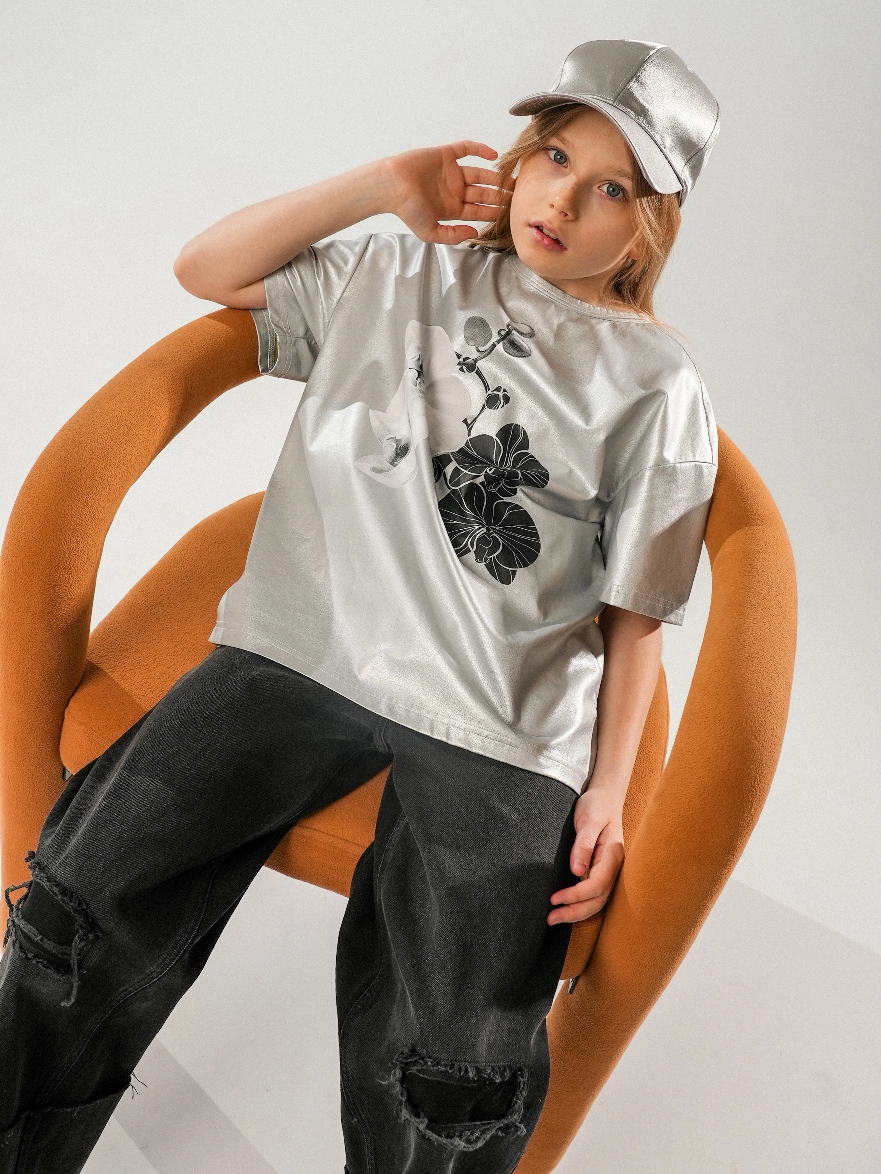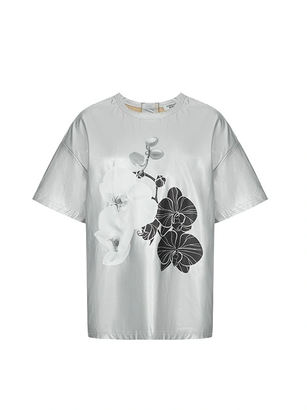 Футболка ALESSANDRO BORELLI для девочки идеально сочетается как с другими моделями из коллекции Orchid, так и с базовыми джинсами или шортами. Модель выполнена в серебристом цвете и украшена изящным цветочным принтом. Дизайн сочетает в себе крупные белые и черные орхидеи, добавляя ей утонченности и шарма. Свободный крой обеспечивает комфорт, а качественная ткань долговечность. В футболке с коротким рукавом можно смело гулять или посещать мероприятия.