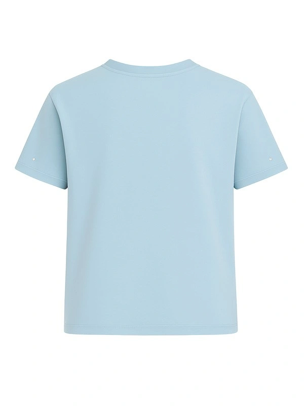 Футболка для девочки Alessandro Borelli — лаконичная и утончённая модель для тех, кто ценит элегантный минимализм. Изготовлена из мягкого хлопкового трикотажа премиум-качества, приятного к телу и обеспечивающего комфорт в течение всего дня. Голубой оттенок дополнен деликатными рассыпанными стразами, создающими эффект лёгкого сияния. На груди — лаконичная надпись BORELLI в классическом шрифте, подчёркивающая стиль и фирменный характер бренда.