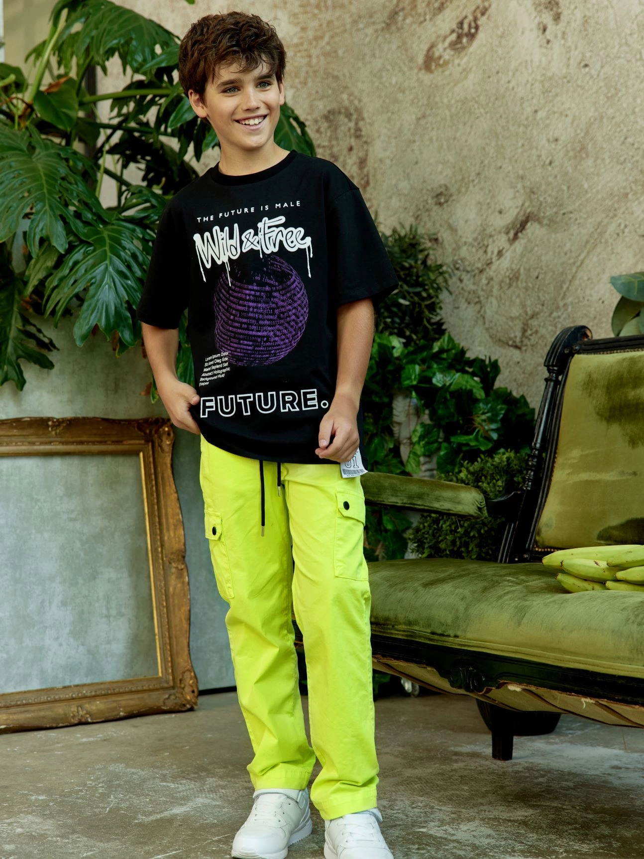 Футболка ALESSANDRO BORELLI для мальчика идеально сочетается как с другими моделями из коллекции Rumble, так и с базовыми джинсами или шортами. Приятная ткань с большим добавлением хлопка делает футболку лучшим вариантом для любого сезона. Строго ухода она не требует: после стирки принт останется таким же ярким. На передней части изделия изображён графический шар с абстрактным узором в фиолетовых тонах и надписями: "THE FUTURE IS MALE", "Wild & free" и "FUTURE". Внизу спереди пришита декоративная нашивка с цифрой "01". Дизайн футболки современный и энергичный. В ней можно смело гулять, отдыхать или заниматься спортом.