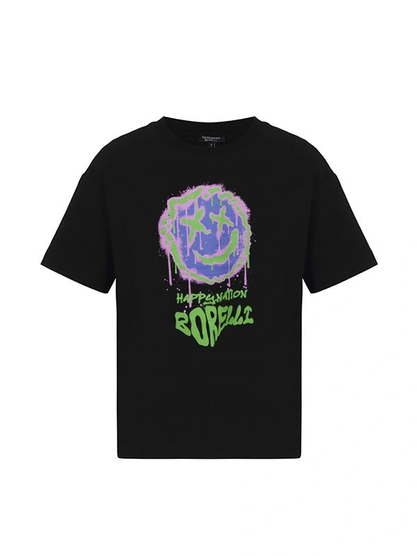 Футболка ALESSANDRO BORELLI для мальчика идеально сочетается как с другими моделями из коллекции Smile, так и с базовыми джинсами или шортами. На передней части футболки изображен яркий графический принт в виде смайла, выполненный в фиолетовых и зеленых тонах, с эффектом граффити. Под изображением находится текст, который дополняет стильный и современный дизайн. Приятная ткань с большим добавлением хлопка делает футболку с коротким рукавом лучшим вариантом для любого сезона. Строго ухода она не требует: после стирки рисунок останется таким же ярким. В ней можно смело гулять, отдыхать или заниматься спортом.