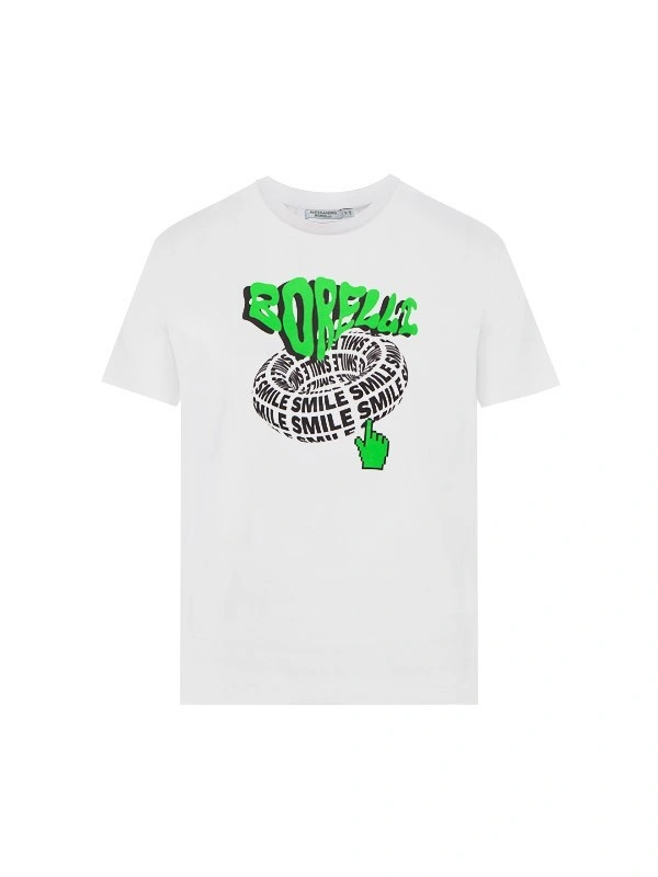 Футболка ALESSANDRO BORELLI для мальчика идеально сочетается как с другими моделями из коллекции Smile, так и с базовыми джинсами или шортами. На передней части изображен текст в зеленом и черном цветах: слово "Borelli" и повторяющееся слово "Smile" в форме круга. Под ним присутствует зеленая пиксельная стрелка-указатель. На спине расположена силиконовая нашивка в виде улыбающегося смайла. Приятная ткань с большим добавлением хлопка делает футболку с коротким рукавом лучшим вариантом для любого сезона. Строго ухода она не требует: после стирки рисунок останется таким же ярким. В ней можно смело гулять, отдыхать или заниматься спортом.