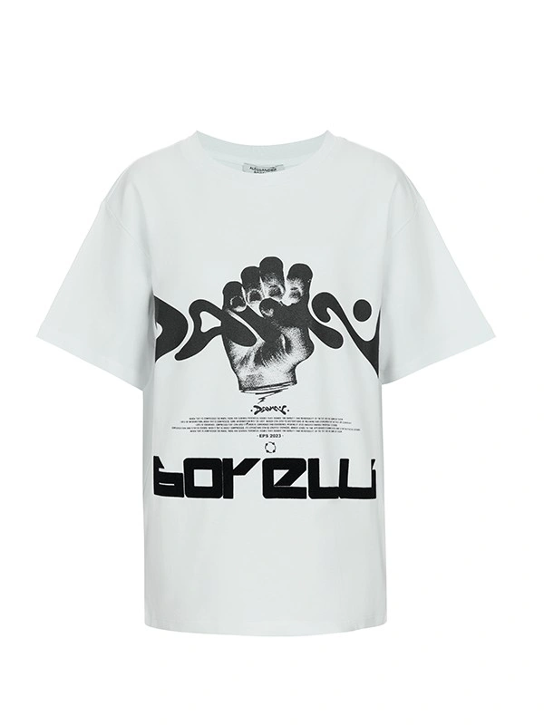 Футболка ALESSANDRO BORELLI для мальчика идеально сочетается как с другими моделями из коллекции Cyberpunk, так и с базовыми джинсами или шортами. Приятная ткань с большим добавлением хлопка делает футболку лучшим вариантом для любого сезона. Строго ухода она не требует: после стирки рисунок останется таким же ярким. Футболка выполнена в белом цвете с черными графическими элементами. На передней части изображен принт с кулаком, окруженный стилизованными буквами и надписями. Дизайн футболки современный и энергичный. В ней можно смело гулять, отдыхать или заниматься спортом.