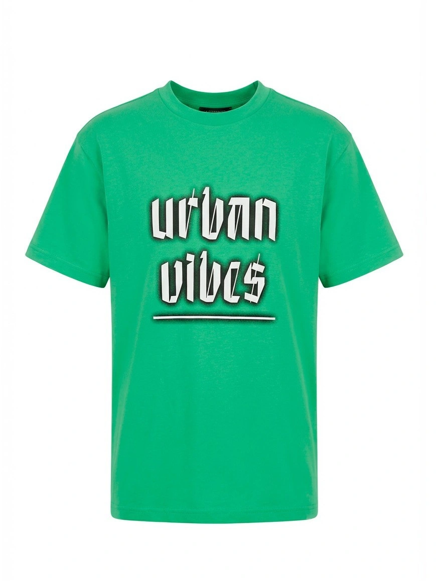 Зеленая футболка Urban Vibes для мальчиков в уличном стиле. Яркая футболка насыщенного зеленого цвета выполнена из мягкого хлопкового трикотажа с классическим круглым вырезом и короткими рукавами. Минималистичный принт "urban vibes" белыми буквами в стилизованном шрифте с декоративной линией создает современный стритвир образ. Чистый лаконичный дизайн без лишних деталей. Универсальная базовая футболка для повседневного гардероба отлично сочетается с джинсами, шортами и спортивными брюками. Качественный материал обеспечивает комфорт и воздухопроницаемость.