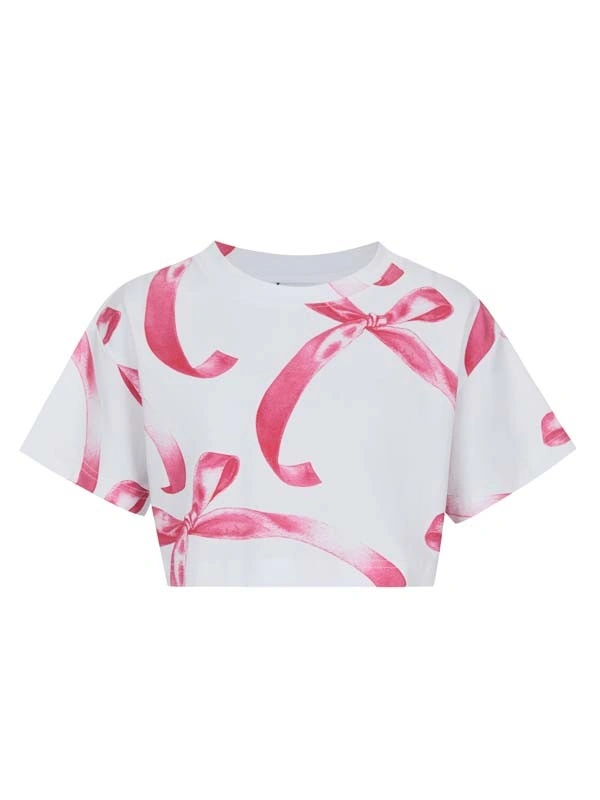 Футболка укороченная ALESSANDRO BORELLI для девочек – лучший выбор для лета и теплой весны. Вся поверхность футболки украшена нежным принтом в виде лент, который добавляет современный акцент. Круглый вырез горловины и короткие рукава добавляют удобства, а также позволяют свободно двигаться. Модель выполнена из мягкой хлопковой ткани, которая долго сохраняет свою яркость и не выцветает после стирки. Футболка будет хороша для прогулок, отдыха или занятий спортом. Прекрасно сочетается как с любой одеждой из коллекции Ballet, так и с другими моделями.