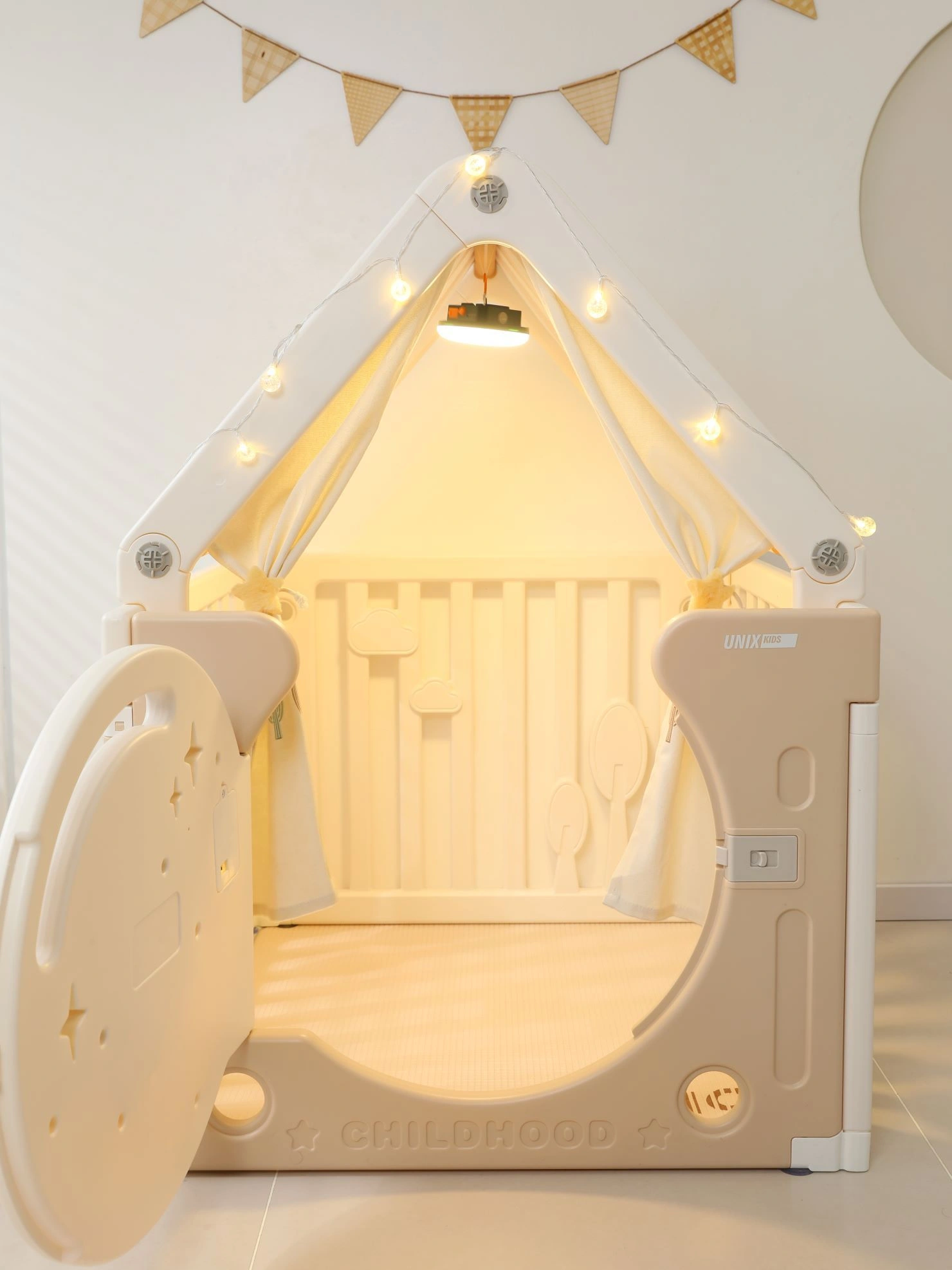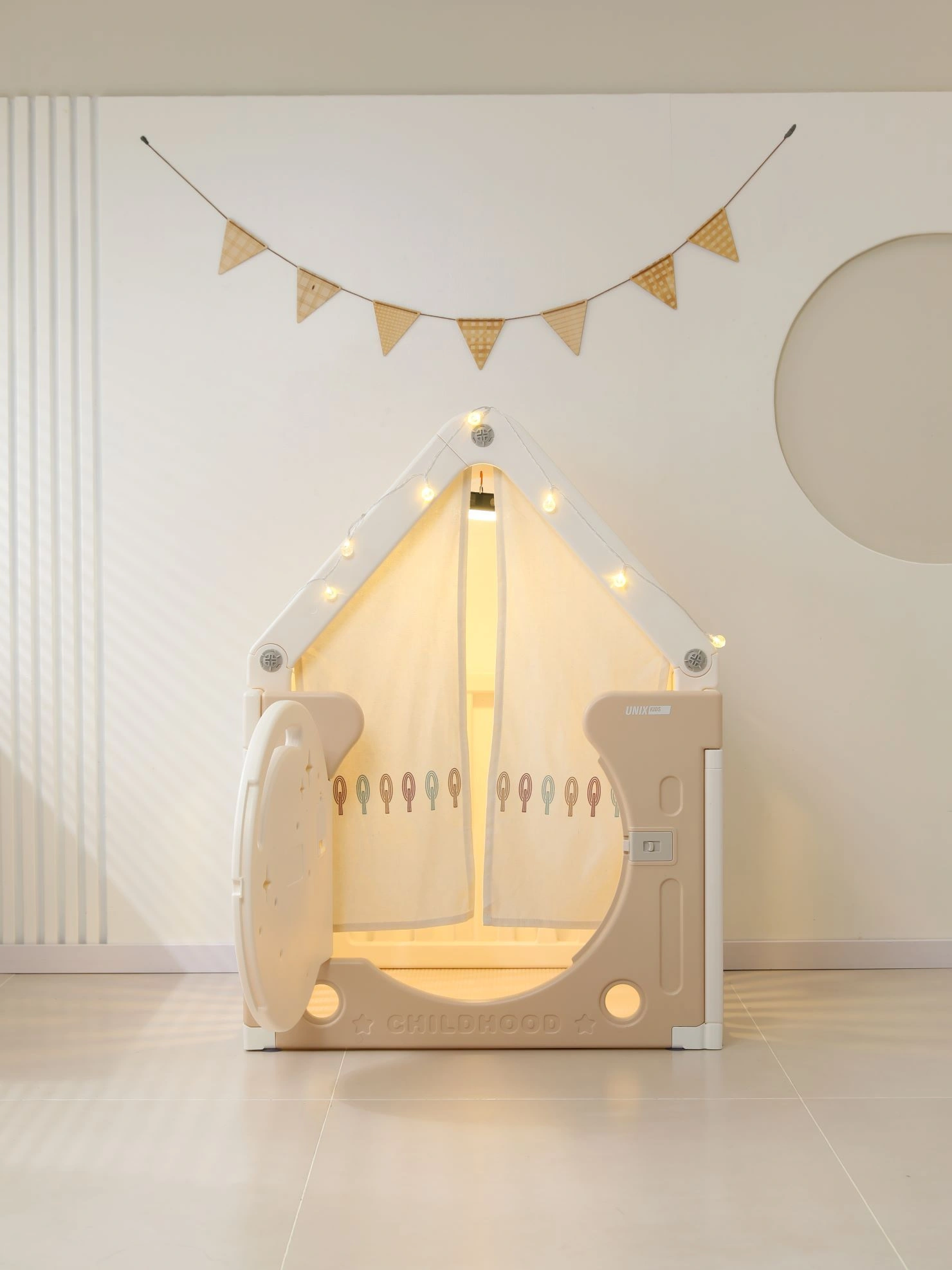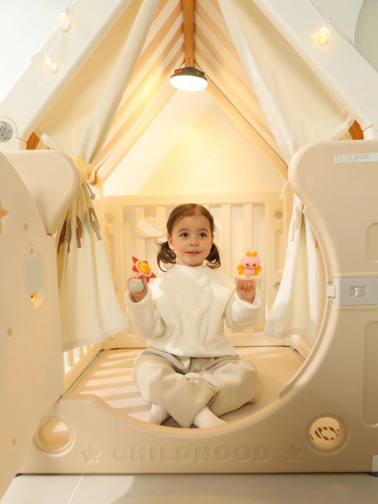 Габариты изделия в собранном виде, см - 85 х 85 х 113. Габариты упаковки, см - 85 х 26 х 66. Детский домик UNIX Kids - это идеальное место для игр и отдыха вашего ребенка. Игровая палатка станет замечательным укрытием, где малыш сможет развивать фантазию и устраивать увлекательные приключения. Напольный домик-шалаш станет любимым местом малыша в его комнате. Шатер позволит разместить книги и игрушки, создавая настоящее игровое пространство, прекрасно подойдет детям от 6 мес. до 6 лет. Приятным дополнением станет коврик 80x80 см, включенный в комплектацию. Ребенку будет удобно и комфортно сидеть внутри, а положив спальные принадлежности, малыш сможет отдохнуть после веселых игр. Раскладывая и обустраивая личное пространство, дети учатся развивать воображением и творческие навыки, а наведение порядка поможет вырасти аккуратными и организованными. С взрослением ребенка, игровой домик можно использовать, как домик для кукол или игрушек. Детский домик для игр имеет прочную конструкцию и дополнительно фиксируется к полу присосками, что обеспечивает стабильность и устойчивость, поэтому когда ребенок находится в внутри, родители могут быть абсолютно спокойными за его безопасность. Игровой домик выполнен из пищевого пластика, который гипоаллергенен, не имеет запаха и абсолютно безопасен для детей. Он не подвержен UV-излучению, поэтому не выгорит на солнце и не потеряет свой цвет. Конструкция домика легко моется и поддерживать чистоту не составит труда. Все эти детали сделают домик-настоящим убежищем для маленьких пользователей.
