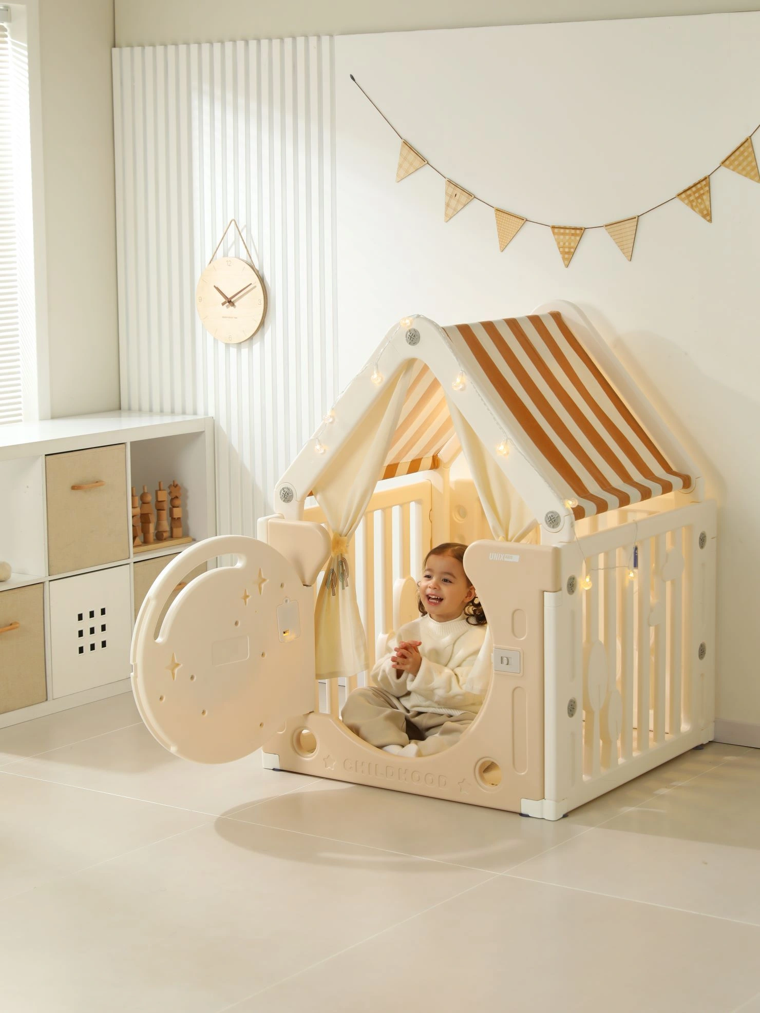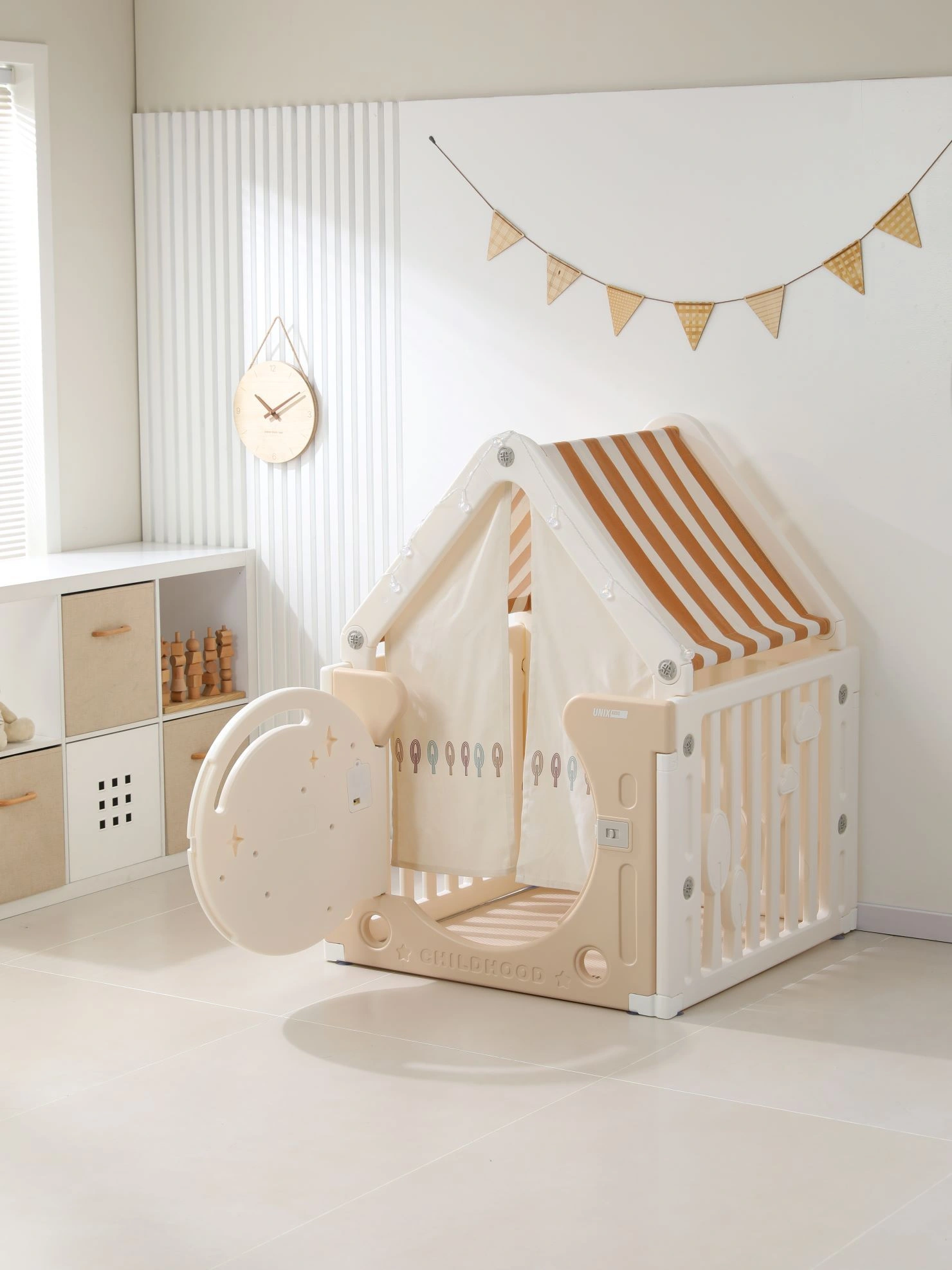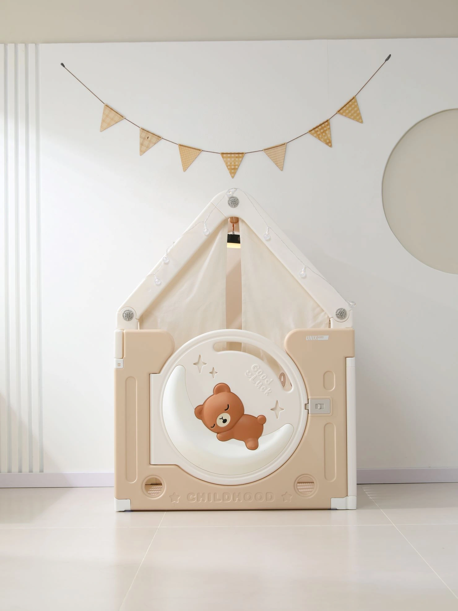 Габариты изделия в собранном виде, см - 85 х 85 х 113. Габариты упаковки, см - 85 х 26 х 66. Детский домик UNIX Kids - это идеальное место для игр и отдыха вашего ребенка. Игровая палатка станет замечательным укрытием, где малыш сможет развивать фантазию и устраивать увлекательные приключения. Напольный домик-шалаш станет любимым местом малыша в его комнате. Шатер позволит разместить книги и игрушки, создавая настоящее игровое пространство, прекрасно подойдет детям от 6 мес. до 6 лет. Приятным дополнением станет коврик 80x80 см, включенный в комплектацию. Ребенку будет удобно и комфортно сидеть внутри, а положив спальные принадлежности, малыш сможет отдохнуть после веселых игр. Раскладывая и обустраивая личное пространство, дети учатся развивать воображением и творческие навыки, а наведение порядка поможет вырасти аккуратными и организованными. С взрослением ребенка, игровой домик можно использовать, как домик для кукол или игрушек. Детский домик для игр имеет прочную конструкцию и дополнительно фиксируется к полу присосками, что обеспечивает стабильность и устойчивость, поэтому когда ребенок находится в внутри, родители могут быть абсолютно спокойными за его безопасность. Игровой домик выполнен из пищевого пластика, который гипоаллергенен, не имеет запаха и абсолютно безопасен для детей. Он не подвержен UV-излучению, поэтому не выгорит на солнце и не потеряет свой цвет. Конструкция домика легко моется и поддерживать чистоту не составит труда. Все эти детали сделают домик-настоящим убежищем для маленьких пользователей.