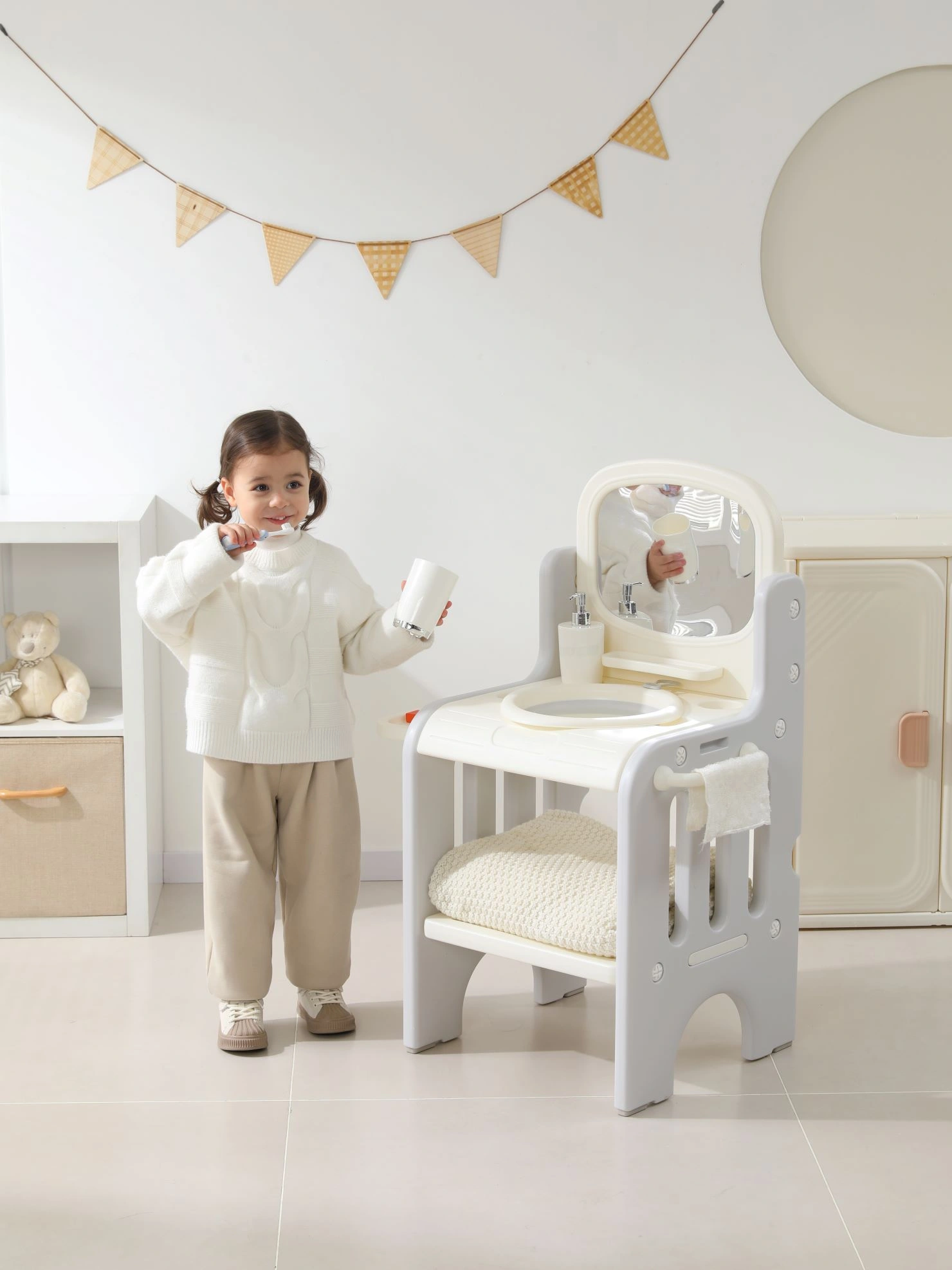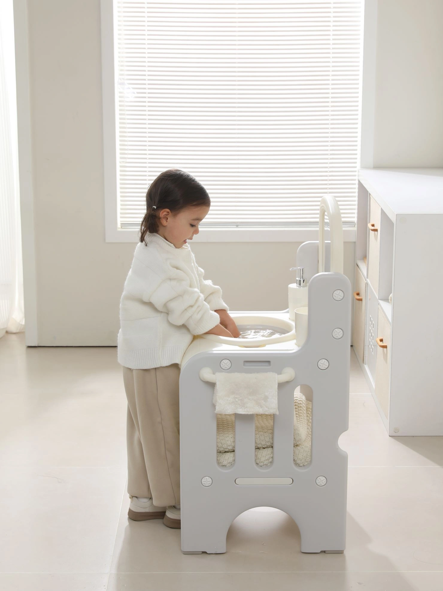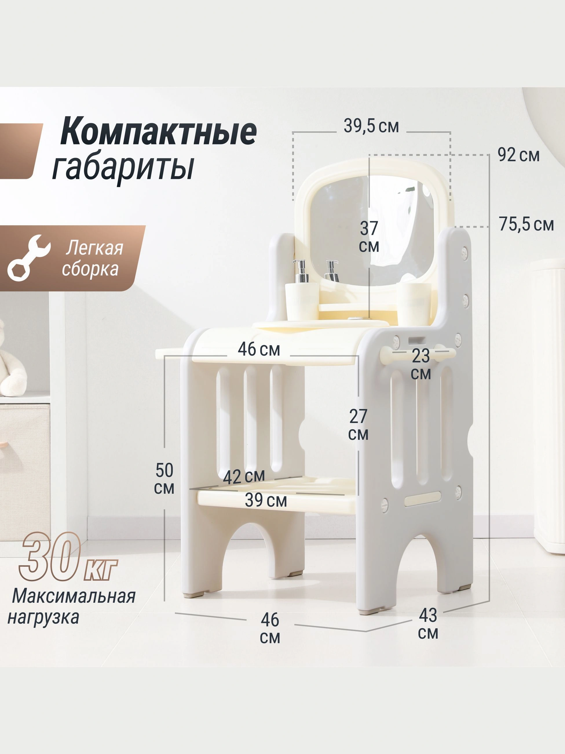 Детская развивающая игрушечная раковина UNIX Kids - прекрасный подарок для малышей. Умывальник детский разнообразит веселые игры и не оставит равнодушным ни одного юного пользователя! Маленькие исследователи известны любовью к играм с водой. Игровой умывальник можно использовать для мытья кукол или для купания игрушек. Малыш создаст свой собственный мир, ведь детская раковина может стать элементом настоящей игры в повара. Сюжетно - ролевые игры – парикмахерская для кукол или салон красоты развивают воображение, мелкую моторику и координацию, а также способствуют развитию речи, фантазии и навыков общения. Умывальник для малышей - настоящая развивающая игрушка. Игры с водой стимулируют воображение, помогая развить ребенку креативность. Рукомойник для детей Мойдодыр - прекрасный инструмент для обучения малышей, благодаря которому ребенок будет осваивать навыки личной гигиены. Пользуясь рукомойником, малыш сможет наблюдать за собой в безопасное зеркало. Аксессуары для личной гигиены – стаканчик для зубных щеток и мыла сделаны из качественных материалов. Продуман держатель для полотенец и открытая полочка под раковиной для игрушек, куда можно сложить детские вещи, игровые принадлежности и полотенца. Благодаря реалистичным аксессуарам, обучение ненавязчиво превратится в игру. Как и вся продукция UNIX Kids, раковина детская для игр с водой изготовлена из пищевого пластика и имеет сертификацию. Пищевой пластик гипоаллергенен, не имеет запаха и абсолютно безопасен для маленьких пользователей. Детский умывальник не подвержен UV-излучению, поэтому игрушка не выгорит на солнце и не потеряет свой цвет. Раковина с водой снимается со стойки и прекрасно моется, поэтому подходит для использования, как дома, так и на улице. Вы сможете брать ее с собой в дальние поездки, чтобы развлечь вашего непоседу. Сглаженные углы выполнены с большим вниманием к безопасности малыша. На ножках имеется специальное противоскользящее покрытие. Надежные шурупы помещены в углубления, не давая раскрутить их маленьким ручкам. Напольная детская раковина обладает небольшим весом и компактными размерами 46 х 43 х 92 см, благодаря чему ее легко перемещать. Развивающая игрушка UNIX Kids доставит вашему малышу бесконечное удовольствие в играх и обучении, подойдет для ванной и поможет в процессе обучения чистки зубов и умывания. Благодаря детскому умывальнику, ребенок почувствует себя, маленьким взрослым. Детский умывальник прекрасно впишется в обстановку детского сада, детской площадки, дачи, квартиры или дома. Это прекрасный подарок на день рождение, Новый год девочке и мальчику, внуку или внучке. С таким подарком, любой праздник станет незабываемым событием и сделаете малыша еще более счастливым!