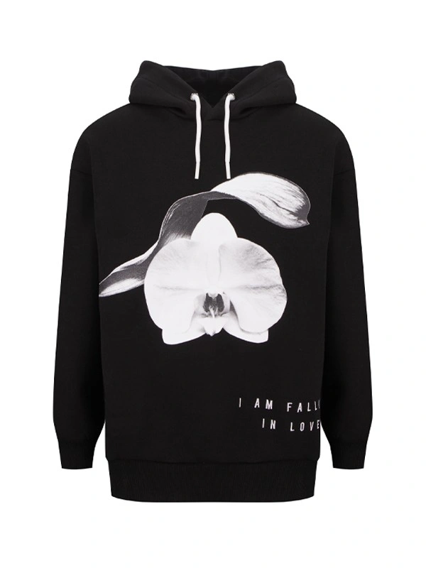 Худи ALESSANDRO BORELLI для девочек выполнено в стиле коллекции Orchid. Модель в чёрном цвете отличается элегантным и стильным дизайном. Спереди худи для девочки украшено большим изображением белой орхидеи, а под ней присутствует надпись "I am falling in love", добавляющая романтичное настроение. Свободное худи имеет глубокий капюшон с белыми завязками, манжеты на рукавах и планку по низу изделия. Толстовка будет удобна для прогулок или занятий спортом. Худи выполнено из приятного к телу материала с большим добавлением хлопка. Не боится частых стирок: ткань не выцветает и не заламывается. Хорошо подойдет для активного отдыха.
