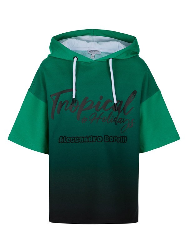 Худи ALESSANDRO BORELLI для мальчика идеально сочетаются как с другими позициями из коллекции Tropical, так и с любыми брюками или шортами. Модель обладает короткими рукавами, а также глубоким капюшоном. Худи выполнено в стильном зеленом градиенте, переходящем от ярко-зеленого к насыщенному темно-зеленому оттенку. На передней части худи контрастная надпись "Tropical #Holidays" и имя бренда "Alessandro Borelli". Толстовка будет удобна для прогулок или занятий спортом. Худи выполнено из приятного к телу материала с большим добавлением хлопка. Модель для мальчика не боится частых стирок: ткань не выцветает и не заламывается. Хорошо подойдет для активного отдыха.