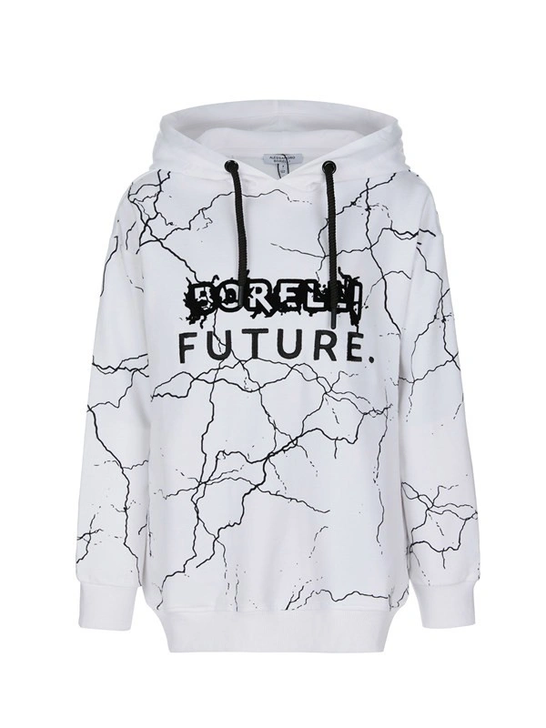 Худи ALESSANDRO BORELLI для мальчика выполнено в белом цвете с оригинальным принтом, имитирующим трещины по всей поверхности ткани. На груди расположен контрастный принт с надписями "BORELLI FUTURE" в черном тоне, добавляющий элементы модного уличного стиля. Модель обладает длинными рукавами, глубоким капюшоном, а также манжетами на рукавах и планкой по низу изделия. Толстовка будет удобна для прогулок или занятий спортом. Худи выполнено из приятного к телу материала с большим добавлением хлопка. Модель для мальчика не боится частых стирок: ткань не выцветает и не заламывается. Хорошо подойдет для активного отдыха.