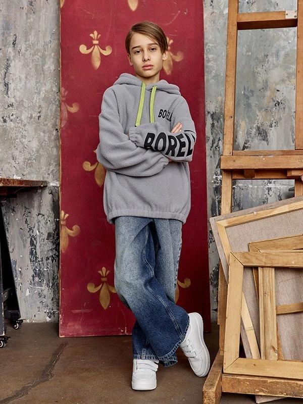 Худи для мальчика Alessandro Borelli — стильная и тёплая модель в спортивном стиле. Выполнено из мягкого флиса с приятной текстурой, обеспечивающей комфорт и уют в прохладную погоду. Серый оттенок дополнен контрастными акцентами: яркие неоновые шнурки на капюшоне и чёрные принты BORELLI на груди и рукаве подчёркивают динамичный, современный характер изделия. Эластичные манжеты и нижняя резинка обеспечивают идеальную посадку и защиту от ветра, а свободный крой не сковывает движений.