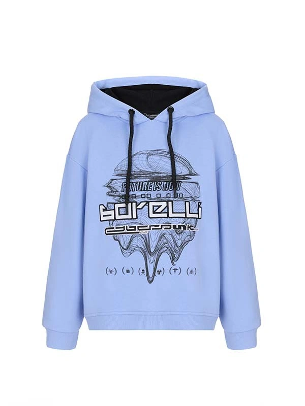 Худи ALESSANDRO BORELLI для мальчика выполнено в голубом цвете. Модель обладает длинными рукавами, глубоким капюшоном, а также манжетами на рукавах и планкой по низу изделия. На передней части изображён крупный графический принт в стиле киберпанк с элементами технологии и футуристической архитектуры. Оригинальный принт дополнен надписями "FUTURE IS NOW" и "BORELLI CYBERPUNK". Толстовка будет удобна для прогулок или занятий спортом. Худи выполнено из приятного к телу материала с большим добавлением хлопка. Модель для мальчика не боится частых стирок: ткань не выцветает и не заламывается. Хорошо подойдет для активного отдыха.
