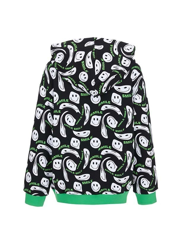 Худи ALESSANDRO BORELLI для мальчика сочетает яркие насыщенные цвета. Модель обладает длинными рукавами, а также глубоким капюшоном с белым шнурком. Основной цвет — чёрный, на фоне которого расположены белые смайлики и надписи "SMILE" зелёного цвета. Спереди выделяется крупная надпись "BORELLI" синим цветом. Манжеты и нижняя планка имеют зелёные акценты. Толстовка будет удобна для прогулок или занятий спортом. Худи выполнено из приятного к телу материала с большим добавлением хлопка. Модель для мальчика не боится частых стирок: ткань не выцветает и не заламывается. Хорошо подойдет для активного отдыха.