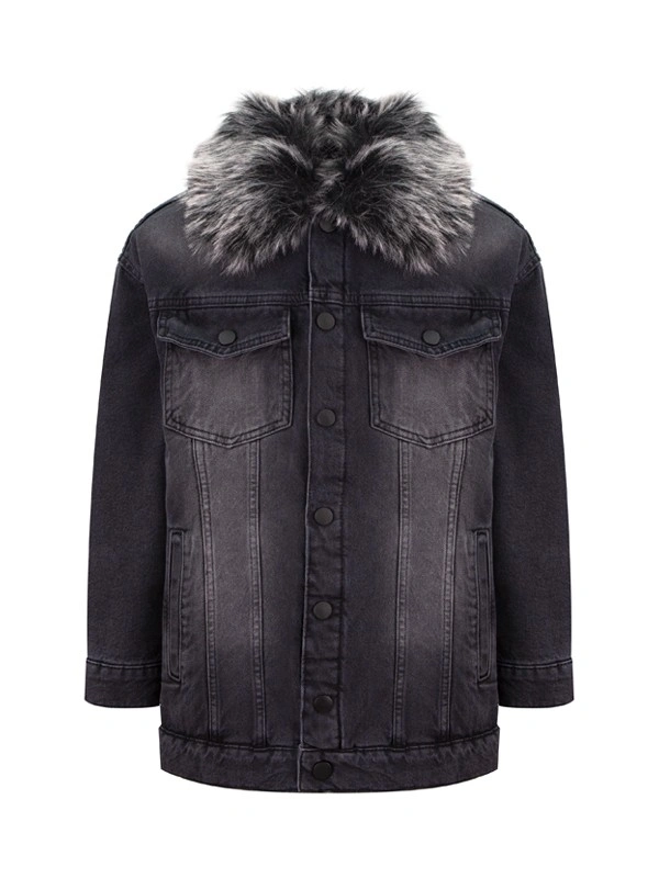 Джинсовая куртка ALESSANDRO BORELLI для девочек выполнена в черном цвете с эффектом выцветания, что придаёт ей стильный и современный вид. Модель застегивается на ряд крупных кнопок, имеет съемный меховой воротник, а также манжеты на рукавах. Спереди два нагрудных кармана на кнопках и два кармана без застежки по бокам. Внутри плотный утеплитель. Куртка выполнена из качественного хлопкового денима. За ней не нужен строгий уход, после стирки ткань не замнется и не потеряет цвет. Джинсовка выглядит модно и подходит для прохладной погоды.
