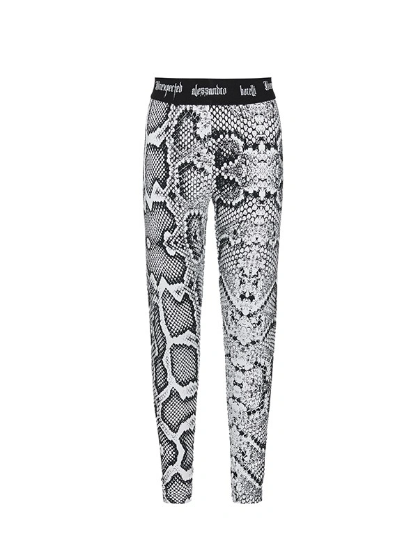 Леггинсы ALESSANDRO BORELLI для девочки идеально сочетаются как с другими моделями из коллекции Snakes, так и с базовыми футболками или туниками. Модель выполнена из черно-белой ткани с узором, напоминающим змеиную кожу. Контрастный пояс на резинке украшен надписью Alessandro Borelli. Эти леггинсы идеально подойдут для создания модного и комфортного образа, в них можно смело гулять или отдыхать.