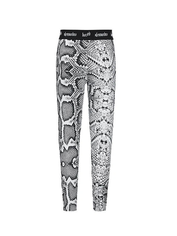 Леггинсы ALESSANDRO BORELLI для девочки идеально сочетаются как с другими моделями из коллекции Snakes, так и с базовыми футболками или туниками. Модель выполнена из черно-белой ткани с узором, напоминающим змеиную кожу. Контрастный пояс на резинке украшен надписью Alessandro Borelli. Эти леггинсы идеально подойдут для создания модного и комфортного образа, в них можно смело гулять или отдыхать.