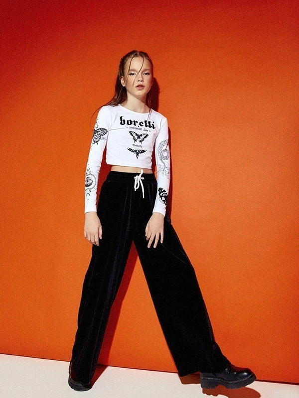 Лонгслив ALESSANDRO BORELLI для девочки идеально сочетается как с другими моделями из коллекции Snakes, так и с базовыми джинсами или шортами. Модель выполнена в белом цвете и украшена контрастными черными принтами. На передней части изображены крупные бабочки, а также надписи "borelli", "Unexpected Love" и "Butterfly". На рукавах также присутствуют рисунки в виде бабочек, змей и других декоративных элементов. Лонгслив имеет круглую горловину и длинные рукава, создавая стильный и современный вид. Строго ухода модель не требует: после стирки рисунок останется таким же ярким. В ней можно смело гулять, отдыхать или заниматься спортом.
