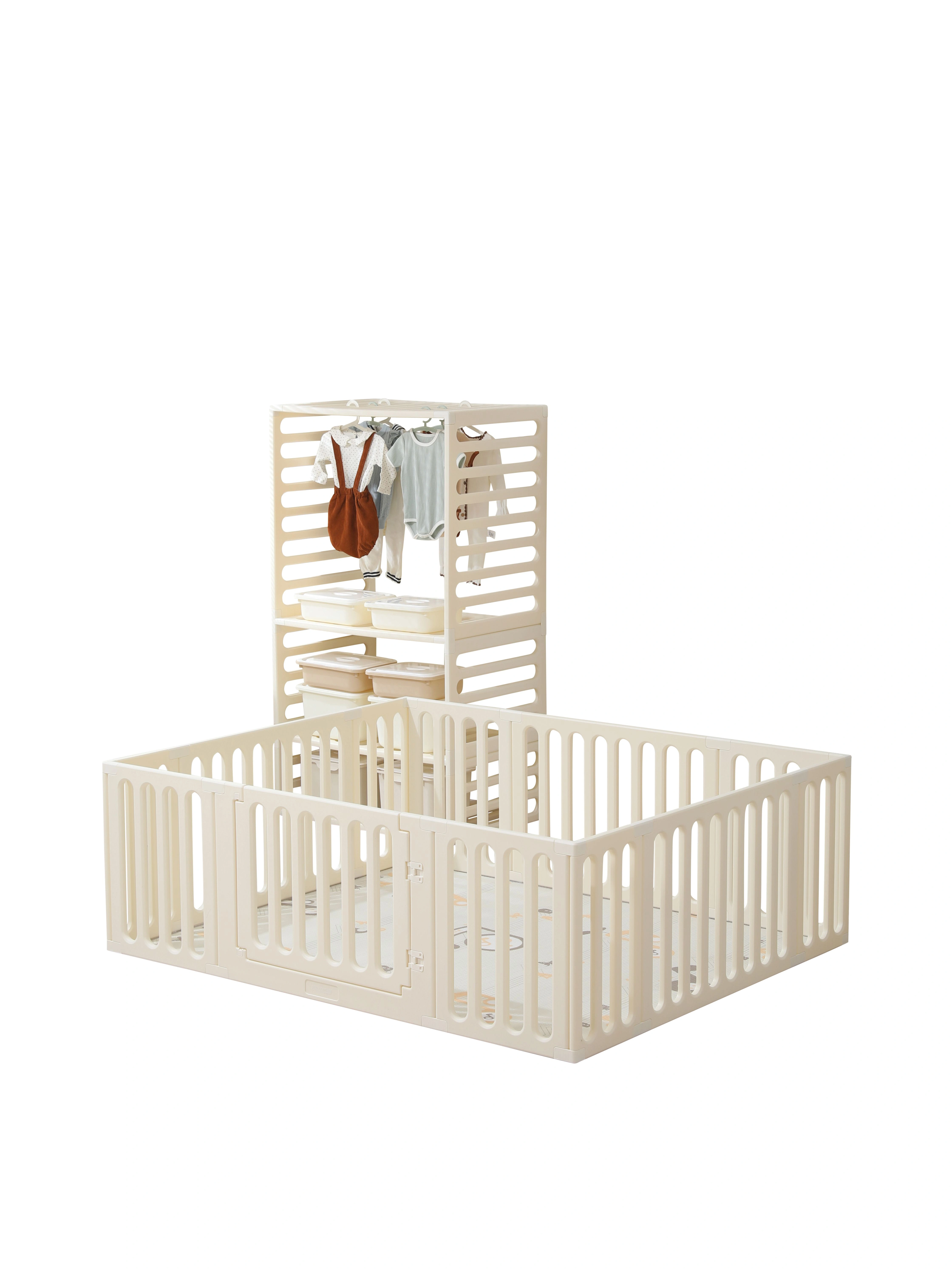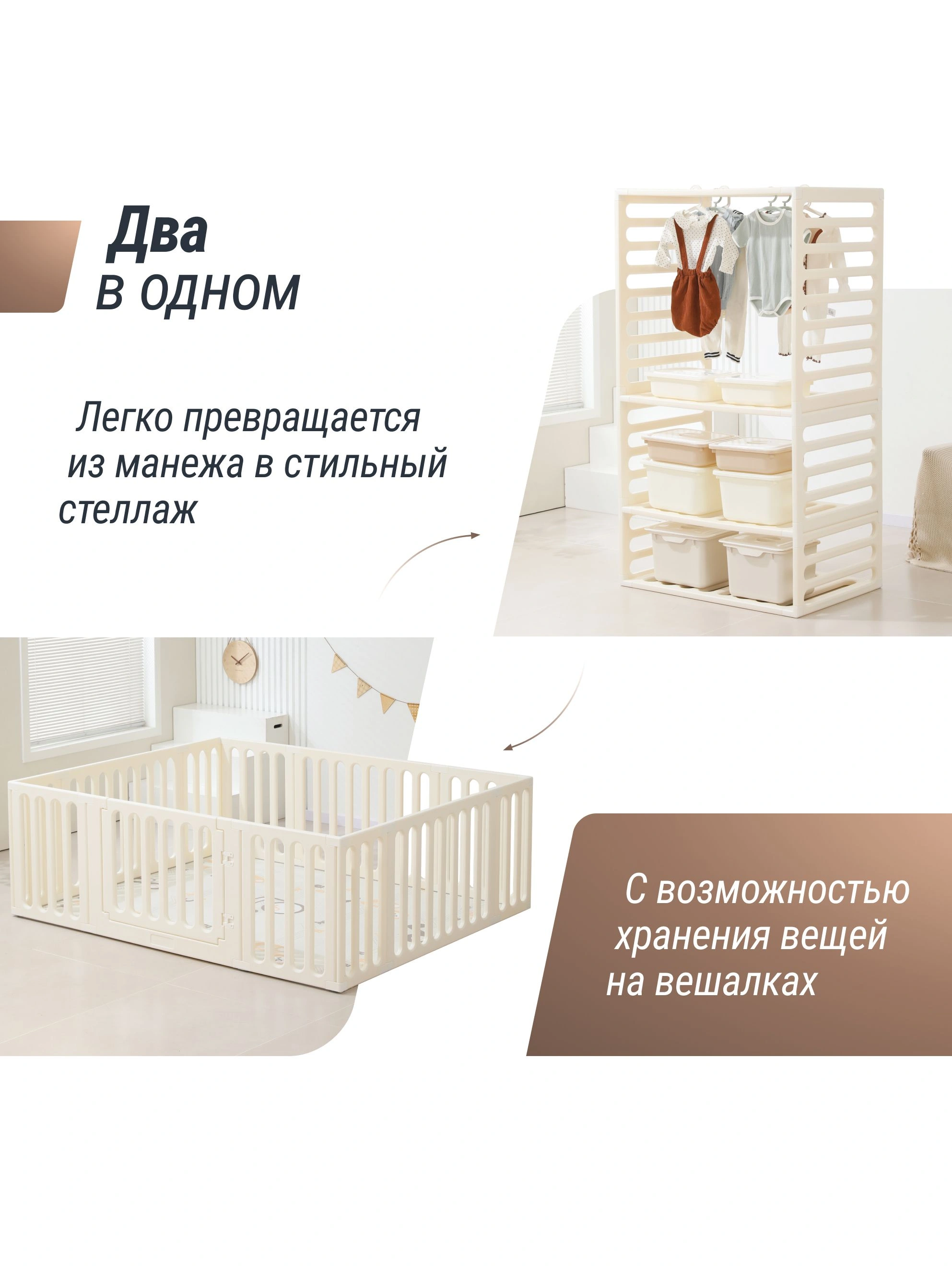 Уникальный манеж - стеллаж UNIX Kids 2 в 1, не только обеспечит безопасность малыша, но и легко трансформируется в стильный стеллаж для хранения игрушек, книг и одежды! Напольный манеж выполнен из гипоаллергенного нетоксичного пищевого пластика, который гарантирует прочность и долговечность. Высокие бортики защитят малыша от падений, а закругленные углы исключат риск травм. Это поможет организовать безопасное и комфортное игровое пространство! Одним из главных достоинств складного манежа является его способность преобразовываться в стеллаж. Вам больше не нужно беспокоиться о том, что делать с манежем, когда малыш немного подрастет. Вы сможете трансформировать его в напольный стеллаж и разместить на нем игрушки и книжки. Горизонтальные перекладины можно использовать для хранения вещей на вешалках. Детский игровой манеж выполнен в современном дизайне с привлекательными цветами, которые понравятся как детям, так и родителям. Он легко впишется в любой интерьер детской комнаты, добавляя ей уюта и стиля. Манеж подходит для детей от рождения до трех лет, что делает его идеальным выбором на несколько лет вперед. Вы можете использовать его как игровое пространство, а затем преобразовать в стеллаж для хранения вещей по мере роста ребенка. С помощью манежа ваш ребенок сможет самостоятельно исследовать окружающий мир, развивая моторику и творческое мышление. А когда он вырастет, стеллаж этажерка станет отличным местом для хранения его любимых книг и игрушек, что поможет развивать навыки организации. Мы понимаем, как важна простота ухода за детской мебелью. Пластиковый манеж легко чистится — достаточно протереть его поверхность влажной тканью. Это позволяет поддерживать чистоту без лишних усилий. В условиях ограниченного пространства манеж-трансформер станет отличным решением. Он не только будет служит безопасным местом для игр, но и выполнит функции системы хранения, помогая вам эффективно использовать каждый квадратный метр!