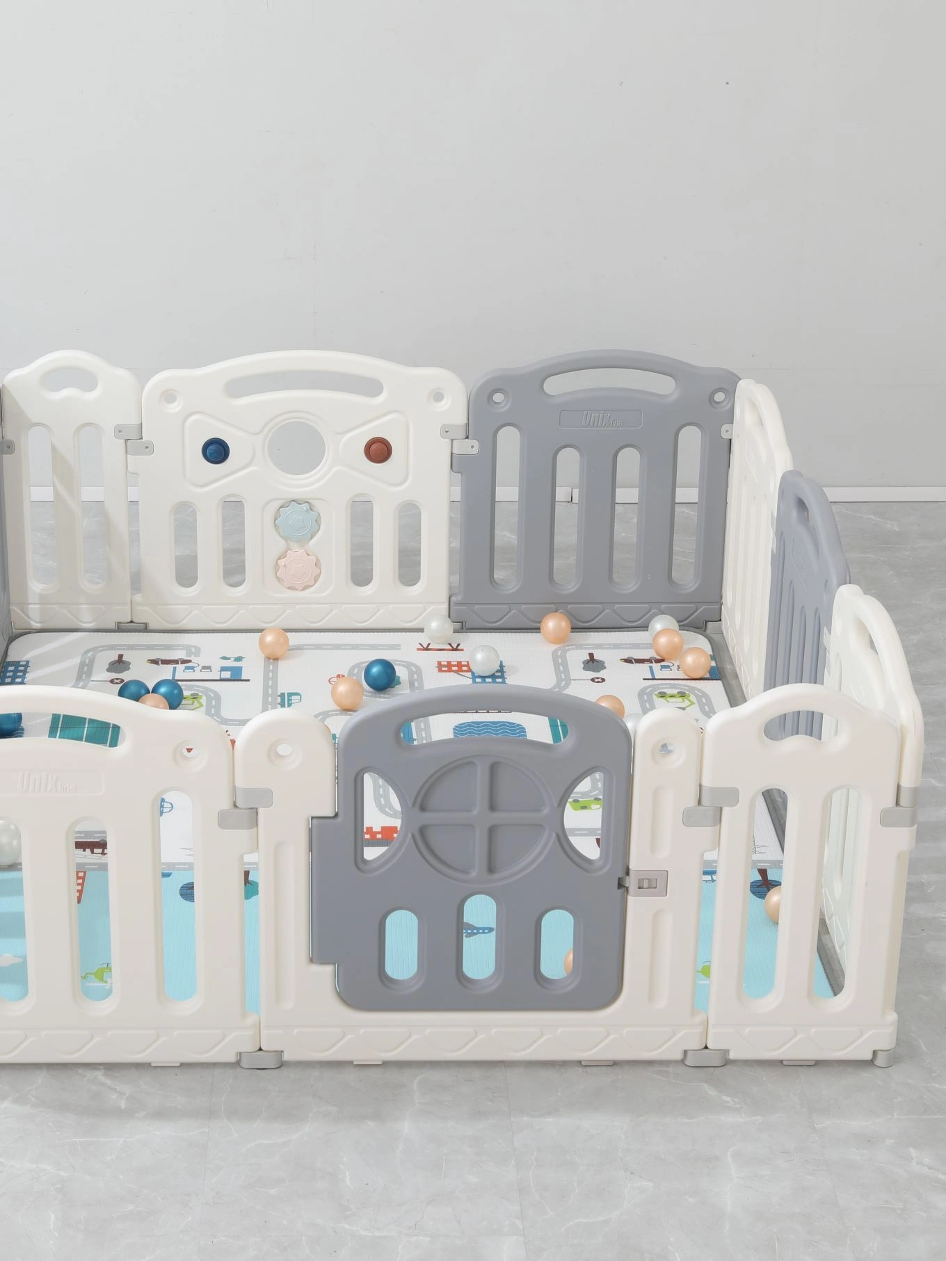 Внутренний размер манежа: 160х180 см. Игровые манежи для детей торговой марки UNIX Kids разработаны в Германии и изготовлены в соответствии с европейскими стандартами качества и безопасности. Материал, из которого состоят манежи, — пищевой пластик 4-го класса — согласно классификации ГОСТ, гипоаллергенный и абсолютно безвредный даже для самых маленьких пользователей. Так же этот материал не боится UV-лучей, и его можно использовать на улице. Все поверхности и высота манежа 67 см. спроектированы таким образом, чтобы максимально обезопасить ребенка от ушибов. Надежная конструкция, специальный фиксатор двери (входа в манеж), прочные соединители секций, противоскользящие опоры и специальные присоски создают идеальные условия для комфортного и безопасного времяпрепровождения юных исследователей мира. В комплекте со всеми моделями манежей UNIX Kids поставляется красочная игровая панель (бизиборд), хорошо развивающая мелкую моторику и умственные способности ребенка. Комплектация Classic дополнительно включает в себя двусторонний полиуретановый коврик 160x180 см толщиной 10 мм и набор из 20 разноцветных шаров. Рифленая поверхность коврика не пропускает холод, смягчает падения при первых шагах и легка в уходе. Манеж легко хранить и перевозить, его сборка занимает 5-10 минут и не требует специальных инструментов. В зависимости от пространства вашей комнаты все манежи торговой марки UNIX Kids могут быть установлены в любой форме: прямоугольник, круг или буквой «Г». Приобретая игровой манеж UNIX Kids, вы создаете собственное уютное пространство для вашего малыша с заботой о его безопасности!