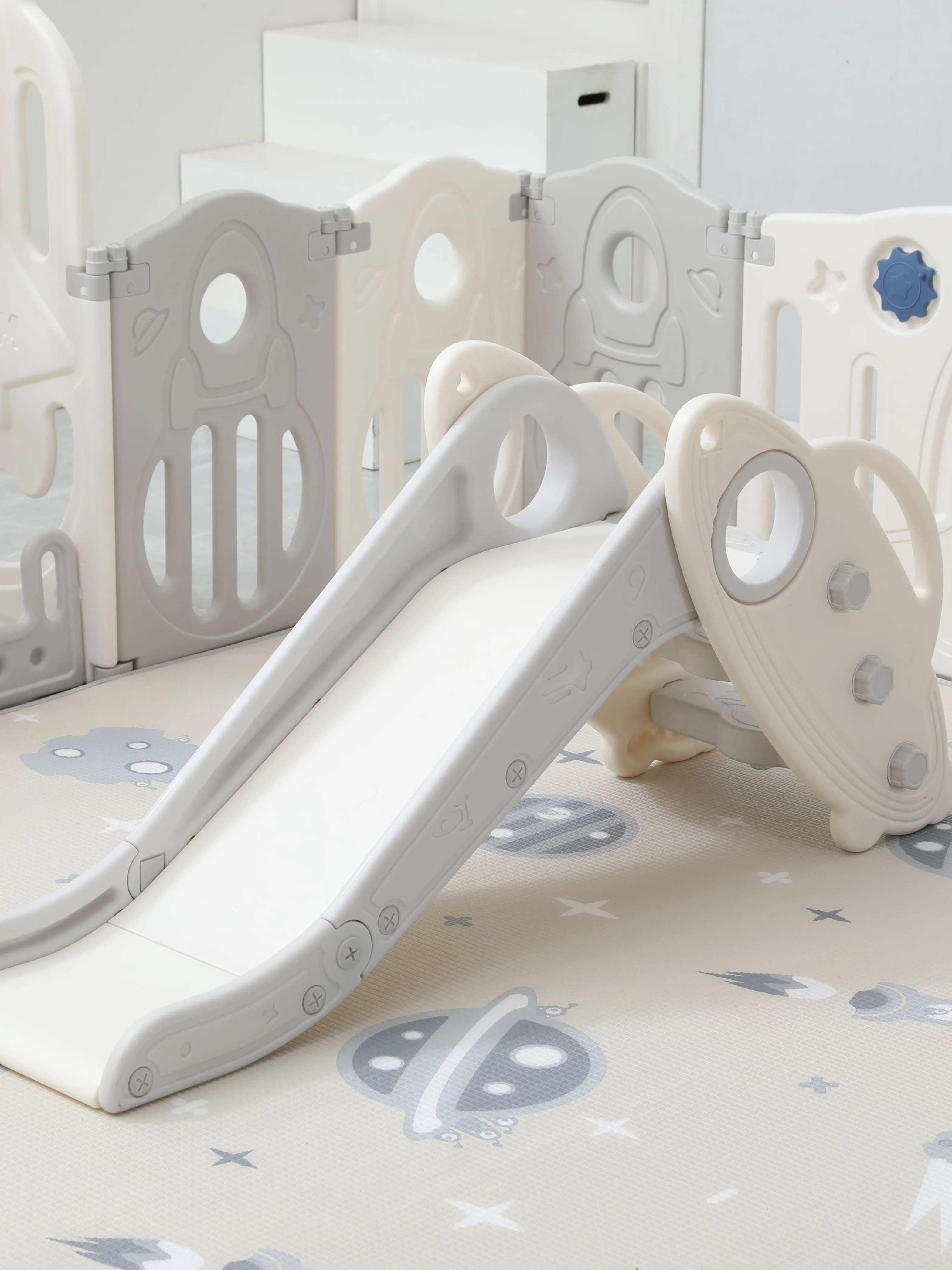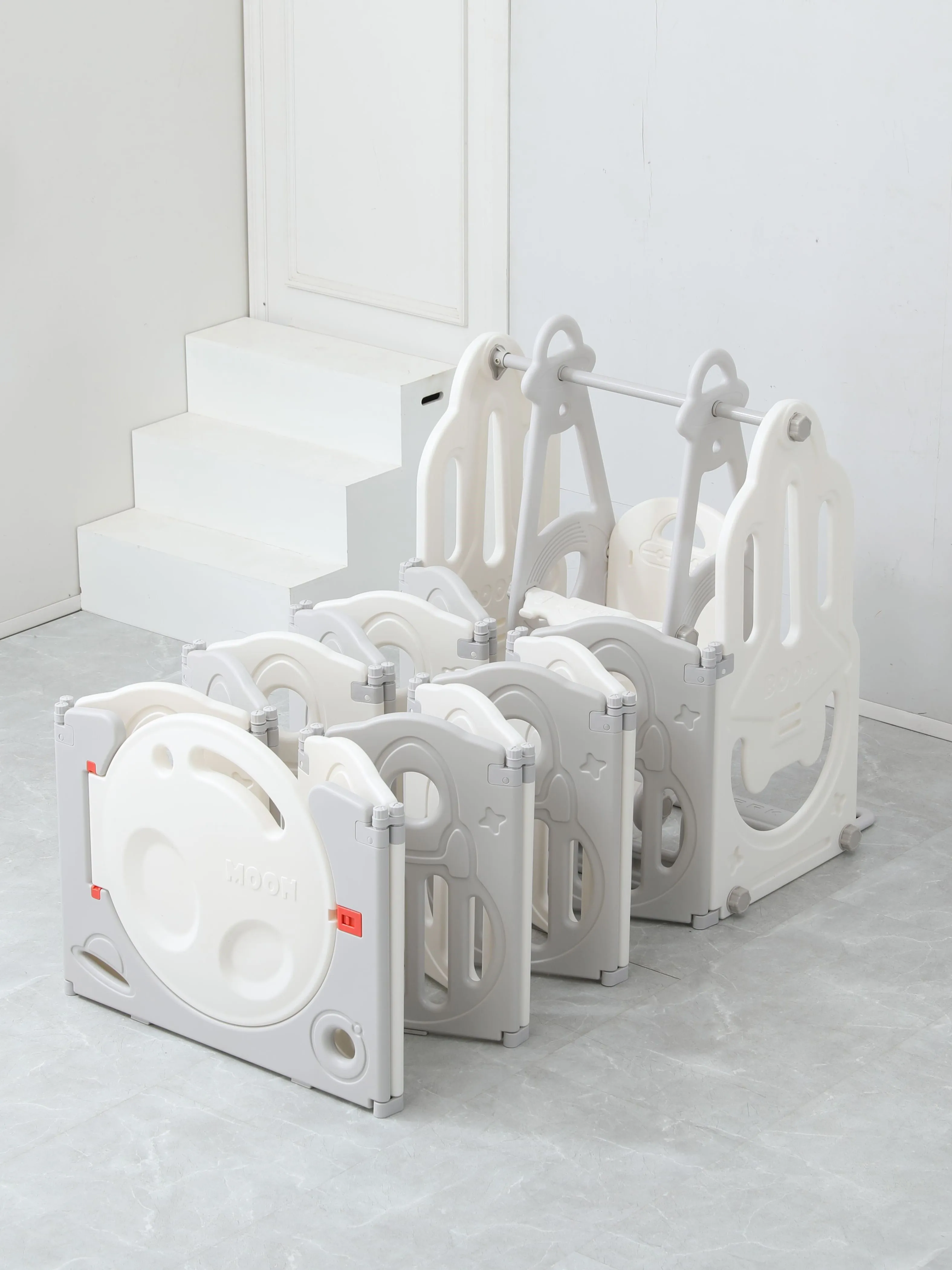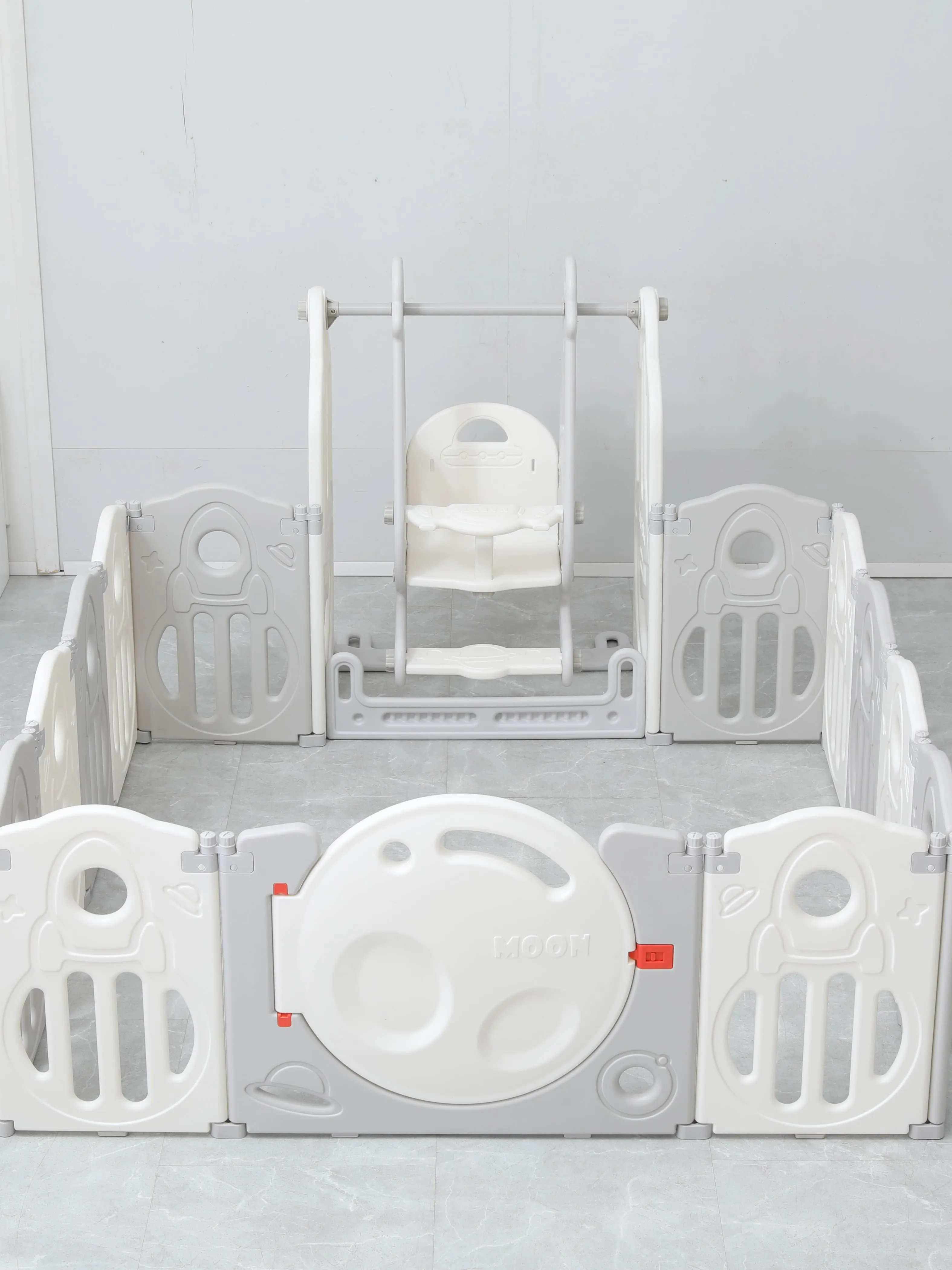 Игровые манежи для детей торговой марки UNIX Kids разработаны в Германии и изготовлены в соответствии с европейскими стандартами качества и безопасности. Материал, из которого состоят манежи, — пищевой пластик 4-го класса — согласно классификации ГОСТ, гипоаллергенный и абсолютно безвредный даже для самых маленьких пользователей. Так же этот материал не боится UV-лучей, и его можно использовать на улице. Все поверхности и высота манежа 63 см. спроектированы таким образом, чтобы максимально обезопасить ребенка от ушибов. Надежная конструкция, специальный фиксатор двери (входа в манеж), прочные соединители секций, противоскользящие опоры и специальные присоски создают идеальные условия для комфортного и безопасного времяпрепровождения юных исследователей мира. В комплекте со всеми моделями манежей UNIX Kids поставляется красочная игровая панель (бизиборд), хорошо развивающая мелкую моторику и умственные способности ребенка. Серия Supreme Space с качелями дополнительно укомплектована яркой баскетбольной стойкой с мячиком, горкой, которую вы можете разместить как в манеже, так и отдельно, и качелями, которые обязательно должны быть закреплены с манежем для безопасности вашего малыша. Так же в комплекте двусторонний полиуретановый коврик 160x160 см толщиной 10 мм и набор из 20 разноцветных шаров. Рифленая поверхность коврика не пропускает холод, смягчает падения при первых шагах и легка в уходе. Манеж легко хранить и перевозить, его сборка занимает 5-10 минут и не требует специальных инструментов. В зависимости от пространства вашей комнаты все манежи торговой марки UNIX Kids могут быть установлены в любой форме: прямоугольник, круг или буквой «Г». Внутренний размер манежа: 160х160 см. Приобретая игровой манеж UNIX Kids, вы создаете собственное уютное пространство для вашего малыша с заботой о его безопасности! Комплектация: Манеж, бизиборд, волнистая горка, качели, баскетбольная стойка, двусторонний полиуретановый коврик толщиной 10 мм и набор из 20 разноцветных шаров.