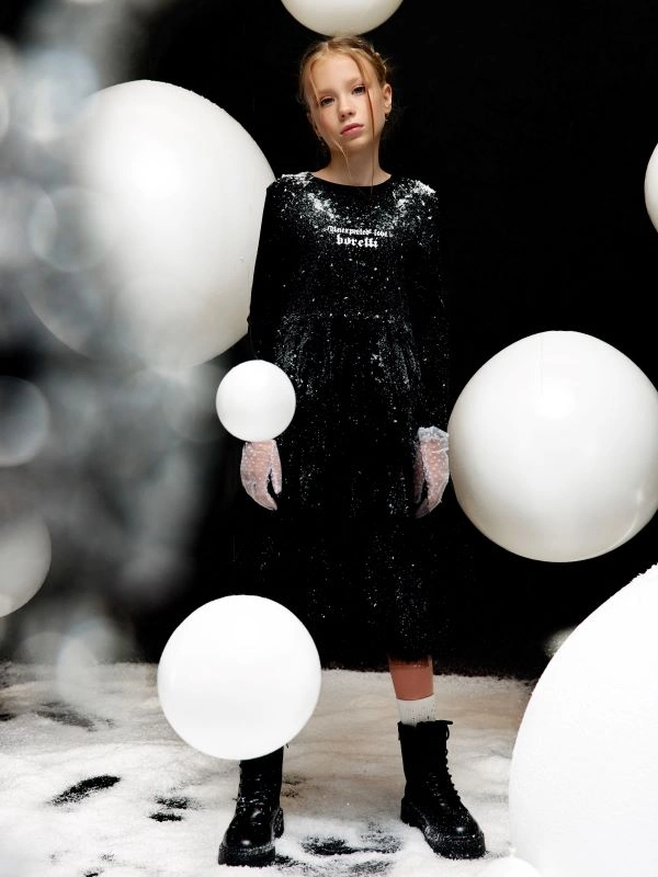 Платье ALESSANDRO BORELLI с длинными рукавами и округлым вырезом горловины выполнено в черном цвете. Модель сочетает в себе комфорт и оригинальность, в стиле коллекции Snakes. Верхняя часть украшена легким контрастным принтом на груди в виде надписи. Юбка выполнена из воздушного тюля, что придаёт наряду романтичность и легкость. Идеально подойдет как для повседневной носки, так и для особых случаев. Качественная ткань с большим добавлением хлопка не боится частых стирок и надолго сохраняет яркость рисунка.