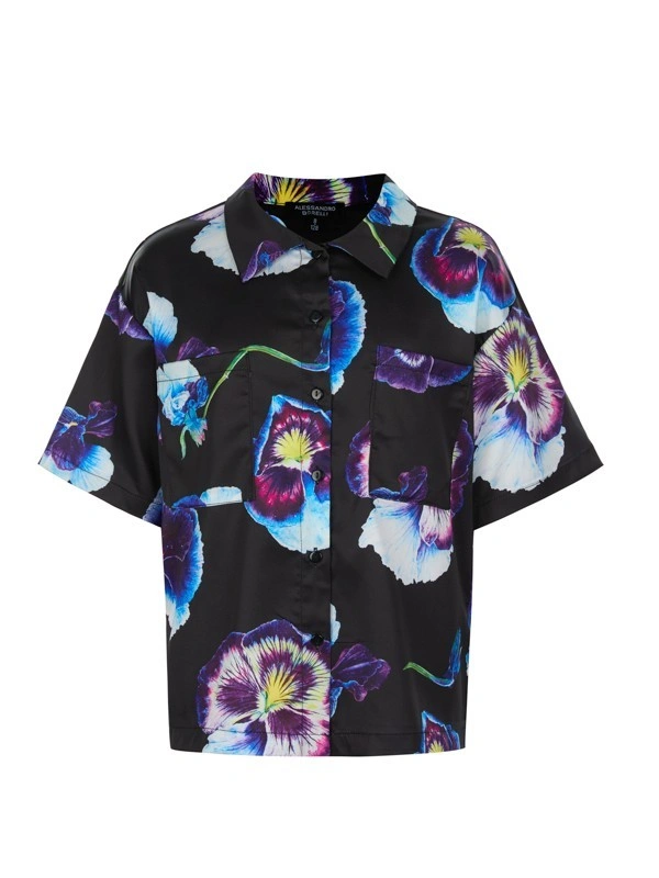 Рубашка ALESSANDRO BORELLI для девочек выполнена в стиле коллекции Violet. Модель в черном цвете отличается элегантным и стильным дизайном. Вся поверхность рубашки усыпана крупными фиалками синего и фиолетового оттенков. Модель имеет классический воротник, карманы на груди, а также застежку на пуговицы. Короткие рукава и аккуратный фасон делают ее подходящей как для повседневного, так и для более праздничного мероприятия. Рубашка для девочки выполнена из легкого качественного материала. Не боится частых стирок: ткань не выцветает и не заламывается.