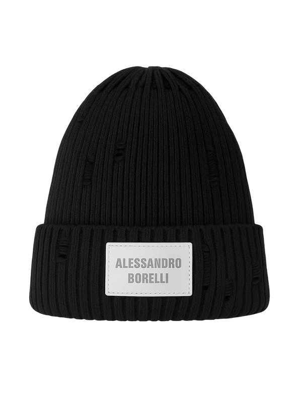 Шапка Alessandro Borelli выполнена из мягкой трикотажной пряжи с фактурной вязкой и декоративными прорезями. Модель имеет комфортную посадку, широкий отворот и прямоугольный патч с названием бренда на передней части. Универсальный черный цвет легко сочетается с верхней одеждой в любом стиле — от спортивного до повседневного. Стильный акцент в осенне-зимнем гардеробе.