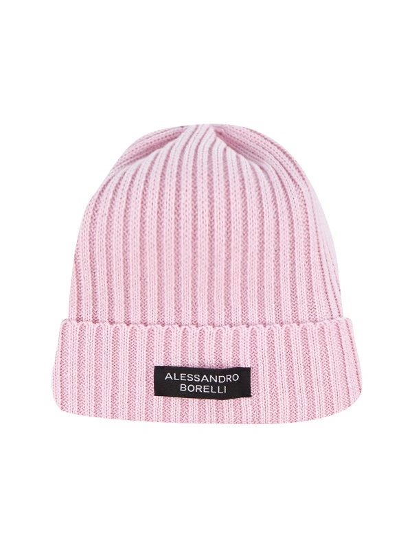 Вязаная шапка выполнена из мягкой, приятной на ощупь пряжи светло-розового цвета. Она имеет классический фасон с отворотом, на котором присутствует контрастная черно-белая нашивка с надписью ALESSANDRO BORELLI. Универсальный дизайн подчеркнет любой образ, добавив уют и тепло в холодное время года. А также обеспечит комфорт и защиту от ветра. Этот аксессуар подойдет для повседневных прогулок или зимних игр.