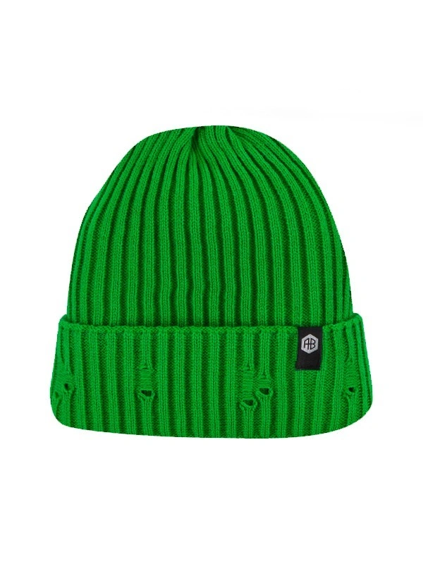 Вязаная шапка выполнена из мягкой, приятной на ощупь пряжи зеленого цвета. Она имеет классический фасон с отворотом, который можно регулировать по желанию. Шапка украшена рваным эффектом и небольшой нашивкой сбоку, которая придаёт шапке завершённый вид. Данная модель - универсальный аксессуар, который легко сочетается с различными образами, а также обеспечит комфорт и защиту от ветра. Подойдет для повседневных прогулок или зимних игр.