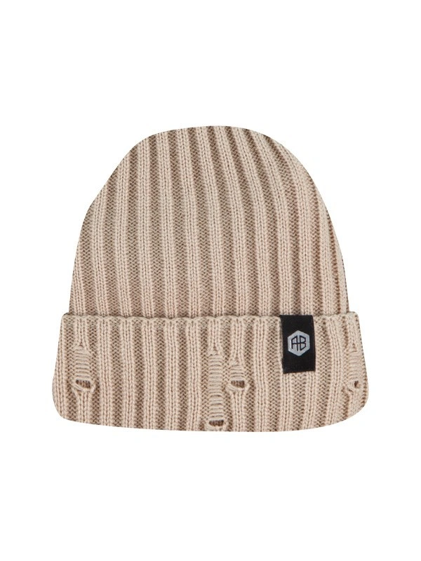 Вязаная шапка выполнена из мягкой, приятной на ощупь пряжи бежевого цвета. Она имеет классический фасон с отворотом, который можно регулировать по желанию. Шапка украшена рваным эффектом и небольшой нашивкой сбоку, которая придаёт шапке завершённый вид. Данная модель - универсальный аксессуар, который легко сочетается с различными образами, а также обеспечит комфорт и защиту от ветра. Подойдет для повседневных прогулок или зимних игр.