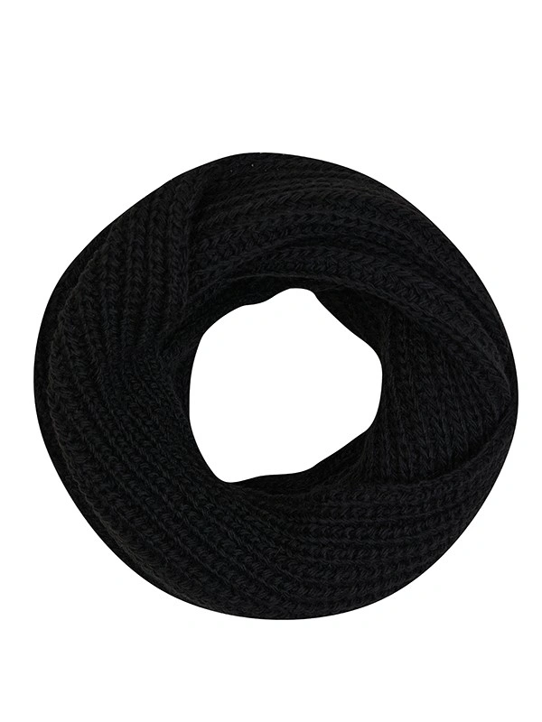 Снуд выполнен из мягкой, приятной на ощупь пряжи черного цвета. Его элегантный и универсальный дизайн подчеркнет любой образ, добавив уют и тепло в холодное время года. Шарф плотно облегает шею, обеспечивая комфорт и защиту от ветра. Его можно использовать как аксессуар для повседневной прогулки или зимних игр.