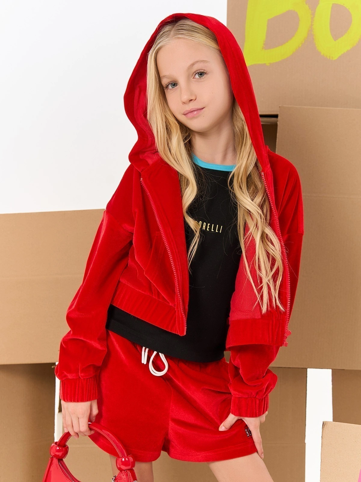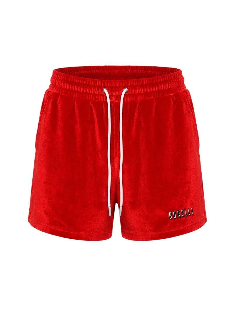 Красные шорты для девочки велюровые. Яркие велюровые шорты с логотипом Borelli обладают эластичным поясом на резинке с белыми завязками, которые обеспечивают комфортную посадку. Боковые карманы добавляют практичность. Мягкий бархатистый материал приятен к телу. Идеальны для прогулок, отдыха и повседневного образа. Купить детские велюровые шорты красные — стильный и удобный выбор для активных девочек.
