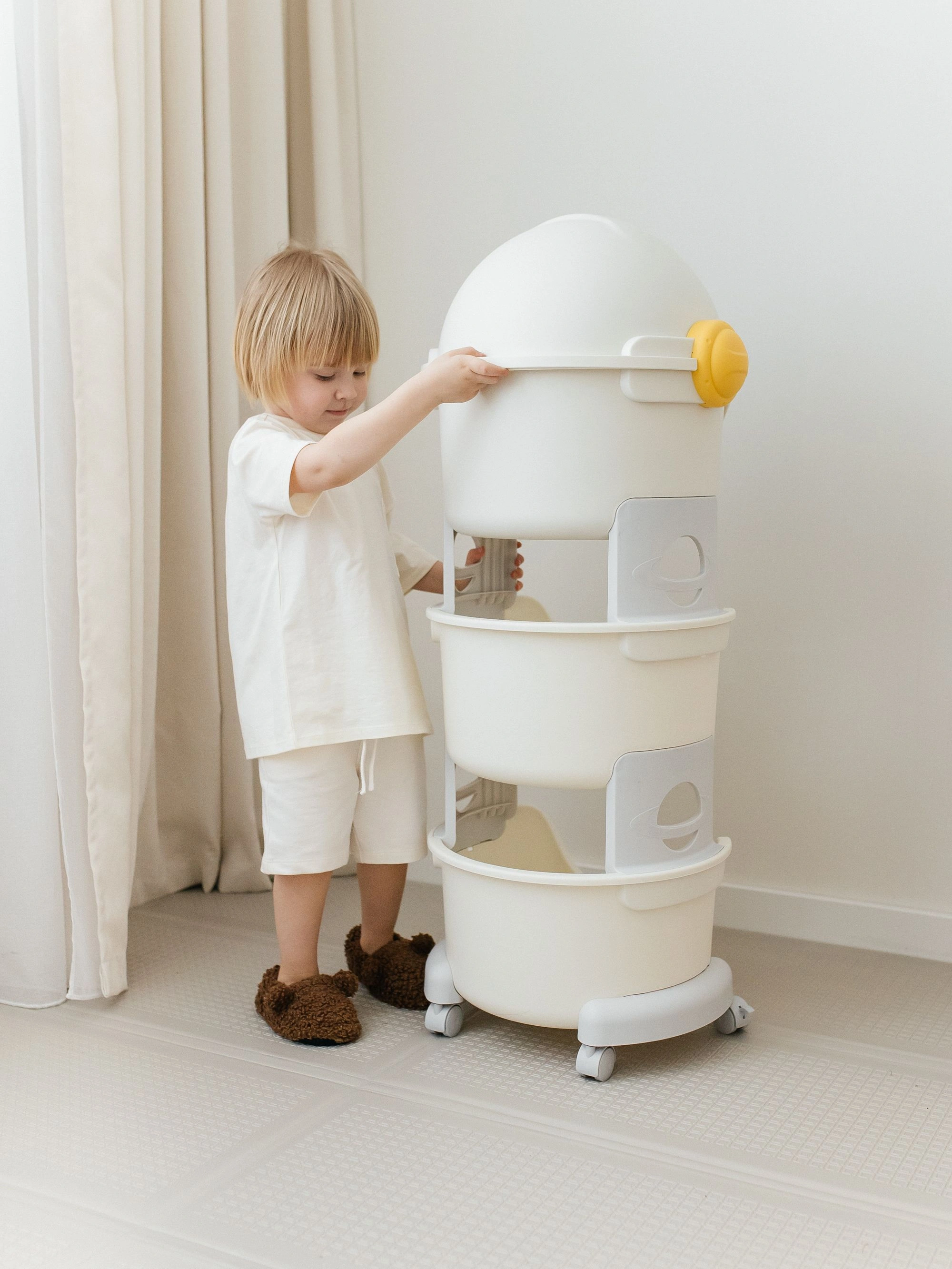 Вес товара, кг - 3.6. Вес упаковки (кг) - 4,1. Габариты упаковки (см) - 36.5 x 35.5 x 41. Габариты в рабочем состоянии - 35x35x105. Стеллаж для игрушек UNIX Kids Cosmo 3 имеет уникальный "космический дизайн" и 3 вместительных ящика, оснащен колесиками для удобства передвижения, блокировкой - для "парковки" стеллажа в нужном месте. Стеллаж для игрушек UNIX Kids Cosmo 3 - находка для дизайнера, имеет нейтральные бело-серые оттенки с ярко-желтыми акцентами и отлично впишется в интерьер любой детской. Данный стеллаж поможет вашему ребенку привыкать к порядку и самостоятельно доставать и убирать все свои сокровища.Хранение игрушек может быть головной болью для родителей, но с нашим стеллажом для игрушек UNIX Kids Вы можете организовать игрушки Вашего малыша в одном месте. Стеллаж для игрушек в детскую комнату имеет несколько ящиков, что позволяет рассортировать игрушки.Открытый стеллаж для игрушек изготовлен из прочного пищевого пластика, который безопасен для детей, не боится влаги и солнечных лучей. Стеллаж этажерка не только поможет вам сохранить порядок и упорядочить игрушки вашего ребенка, но и станет стильным элементом интерьера. Напольный стеллаж с ящиками оснащен колесиками для удобства передвижения, а также блокировкой – для "парковки" стеллажа в нужном месте. Детский стеллаж поможет создать чистоту и порядок в детской комнате, позволяя хранить игрушки в определенном месте. Также детский стеллаж для игрушек способствует развитию навыков самостоятельности и ответственности у ребенка – Ваш малыш сможет самостоятельно убирать и находить нужные игрушки. Стеллаж для игрушек с ящиками доступен в разных цветах и дизайнах, чтобы Вы могли подобрать подходящий вариант для детской комнаты. Не дайте беспорядку взять верх! Приобретите стеллаж для игрушек уже сегодня и создайте уютное место для игр и творчества вашего малыша!