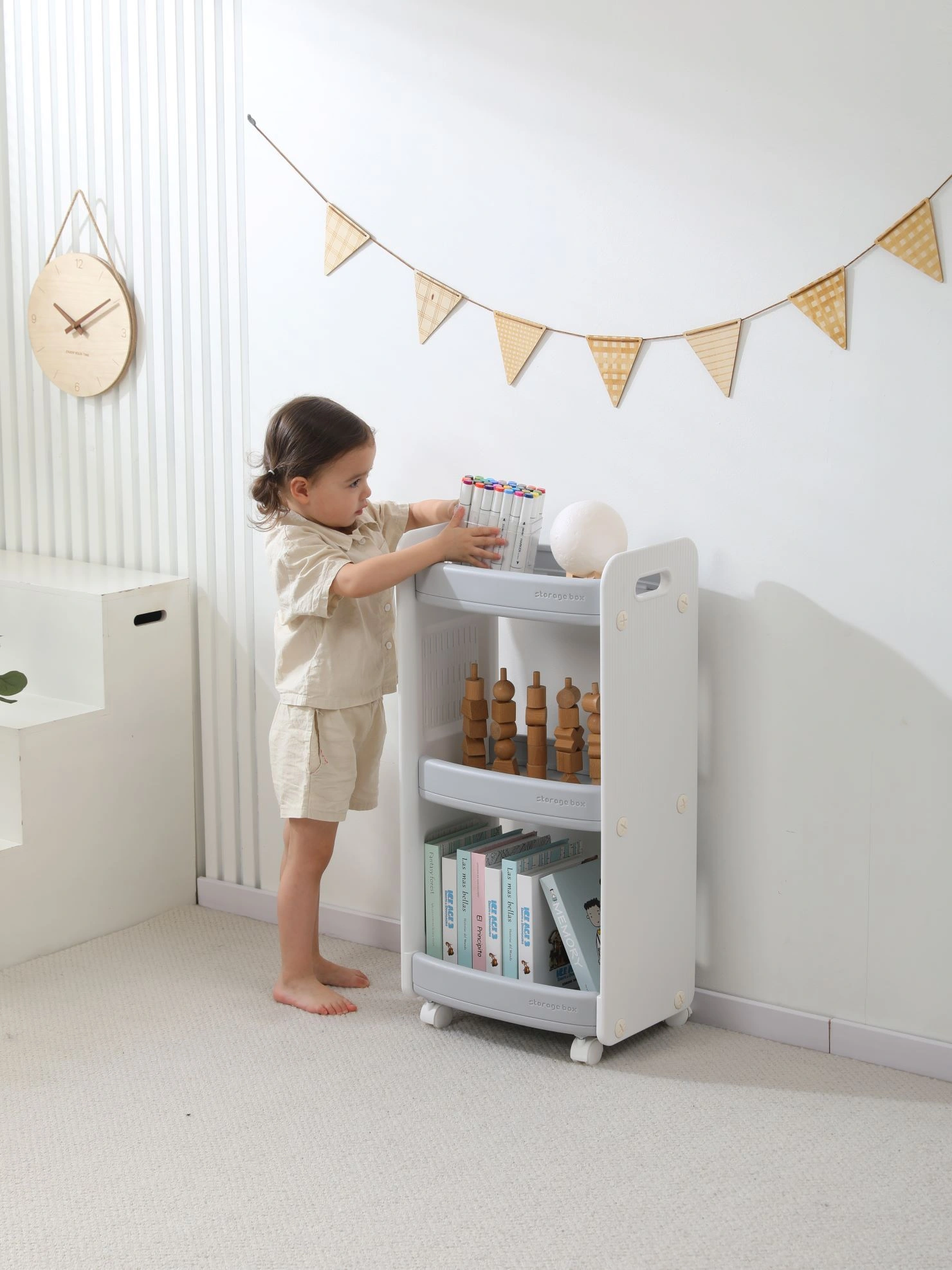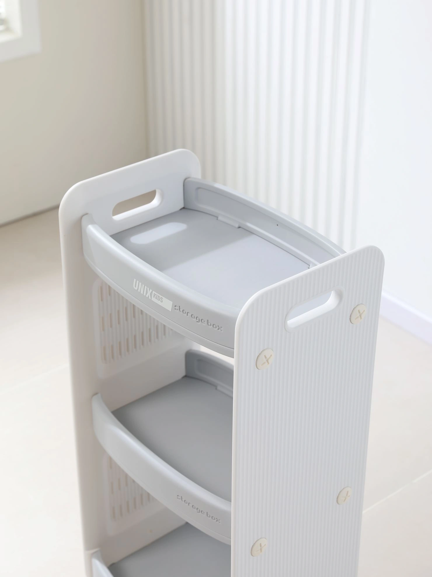 Детский стеллаж для книг UNIX Kids — идеальное решение для организации пространства вашего ребенка и формирования у него любви к чтению! Стильный и функциональный стеллаж станет не только практичным элементом интерьера, но и настоящим источником вдохновения для маленького книголюба! Мы заботимся о здоровье маленьких пользователей, поэтому тележка изготовлена из прочного пищевого пластика. Все детали тщательно обработаны, чтобы избежать острых углов, зазубрин и травм. Напольный стеллаж имеет полки, что позволяет удобно рассортировать и разместить книги, журналы и тетради. Высота органайзера позволяет малышу самостоятельно расставлять свое богатство и будет побуждать детей исследовать мир книг. Размещая любимые истории на видном месте, вы помогаете формировать у ребенка привычку к чтению с раннего возраста.и Стеллаж помогает детям учиться организовывать свое пространство, находить и убирать свои вещи. Это способствует развитию ответственности и самостоятельности. С помощью этажерки на колесиках вы сможете создать уютный уголок для чтения, где ваш ребенок сможет наслаждаться книгами в комфортной обстановке. Добавьте мягкий плед и подушки — и вот вам идеальное место для погружения в мир фантазий! Чтение книг — это не только развлечение, но и возможность провести время вместе с родителями. Создайте традицию совместных чтений, выбирая книги с полок нового стеллажа!