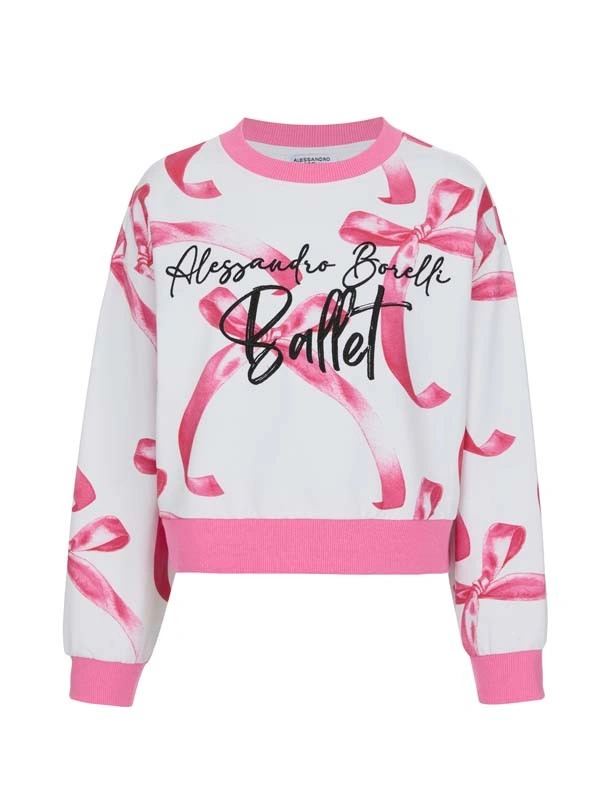 Свитшот ALESSANDRO BORELLI для девочек идеально сочетается как с другими позициями из коллекции Ballet, так и с любыми брюками или юбкой. Свободный свитшот с длинными рукавами имеет округлый вырез горловины, манжеты на рукавах и планку по низу изделия. Вся поверхность модели украшена нежным принтом в виде лент, который добавляет современный акцент. На груди аккуратная вышивка «Alessandro Borelli Ballet». Свитшот будет удобен для прогулок или занятий спортом. Выполнен из приятного к телу материала с большим добавлением хлопка. Не боится частых стирок: ткань не выцветает и не заламывается. Хорошо подойдет для активного отдыха.
