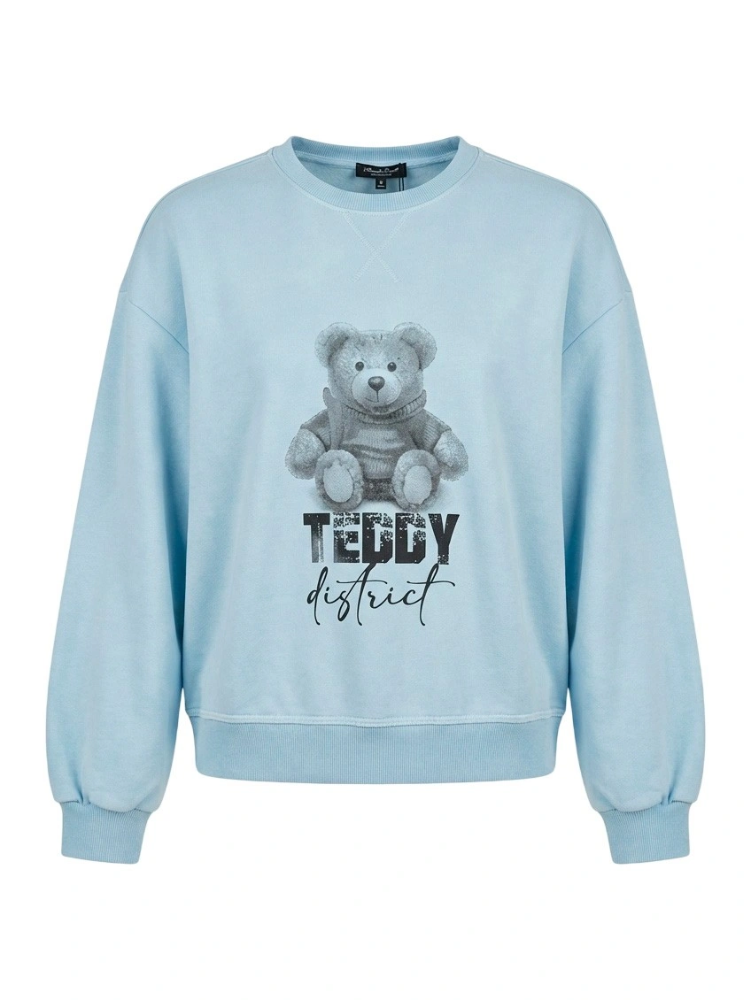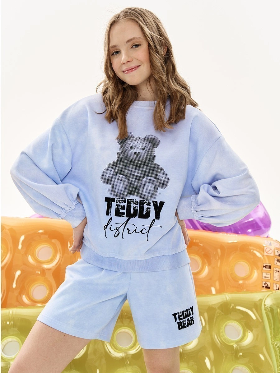 Свитшот для девочки «Teddy District» — стильный лавандовый свитшот с графичным принтом медвежонка. Мягкий трикотаж, свободный крой, круглый вырез и трикотажные манжеты обеспечивают комфорт на весь день. Принт в технике халфтон придаёт образу современный городской вид. Идеально для школы, прогулок и повседневных луков. Купить свитшот для девочки с медведем — практично, модно и уютно!